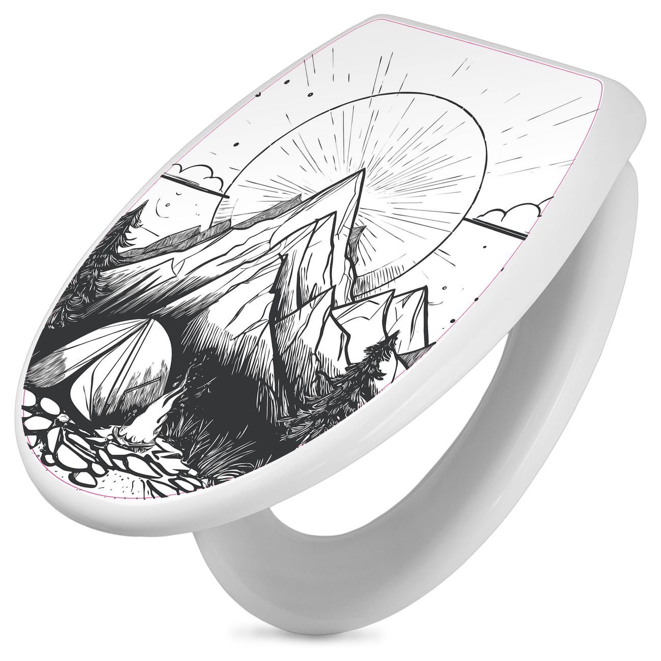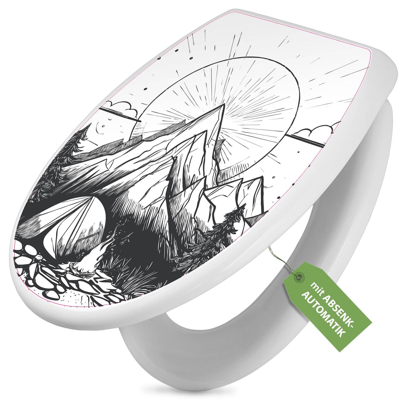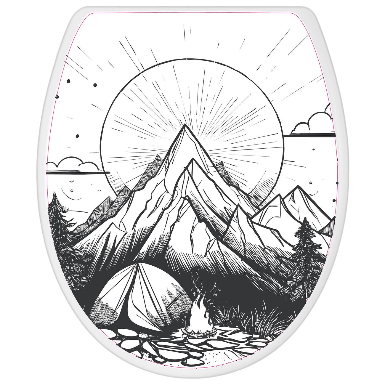 Toilettendeckel weiß mit Absenkautomatik Motiv Bergcamping Abenteuer 2