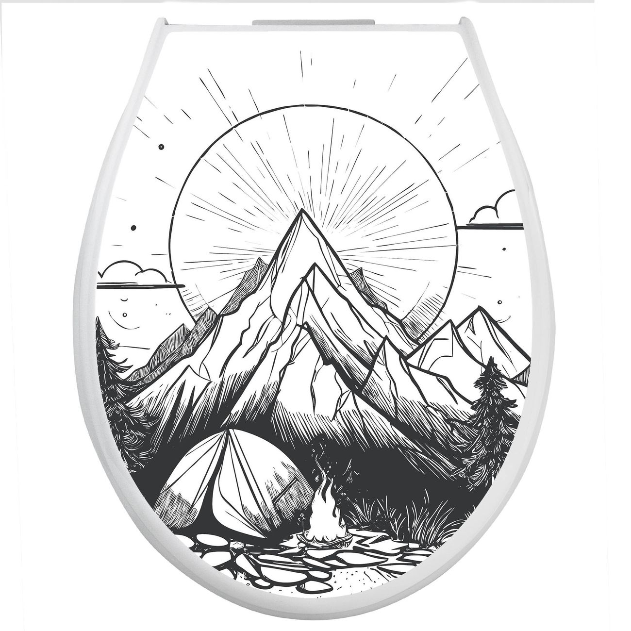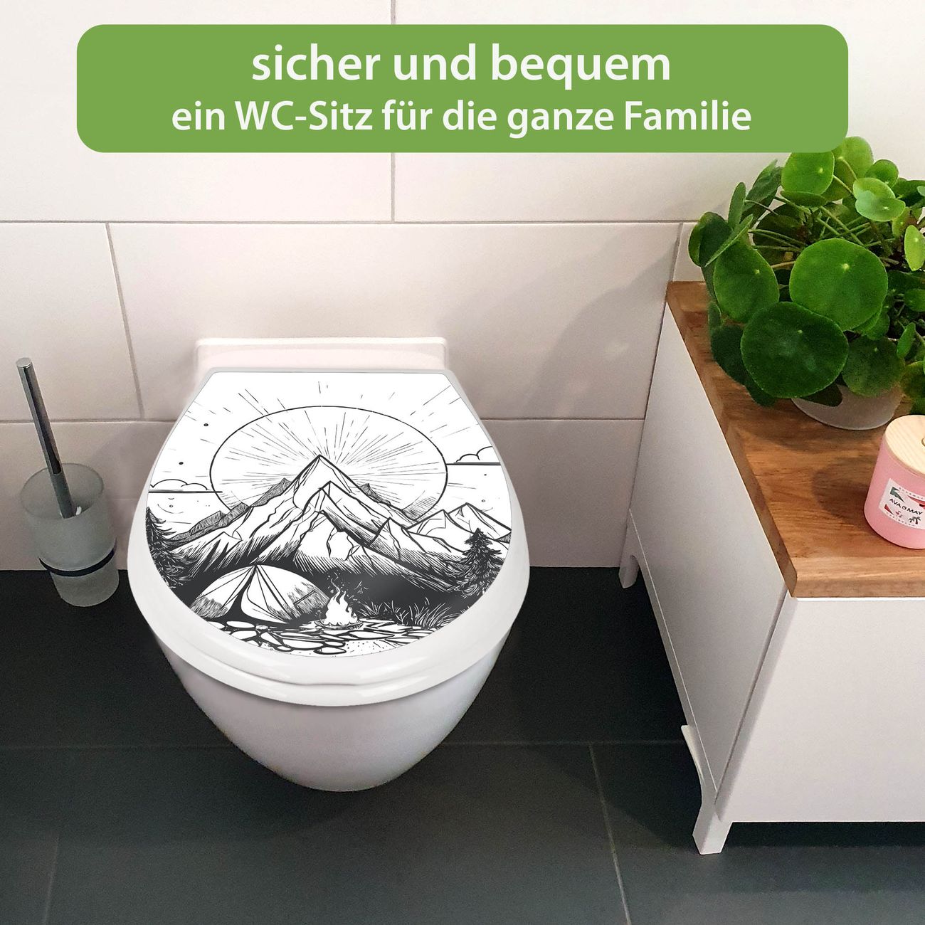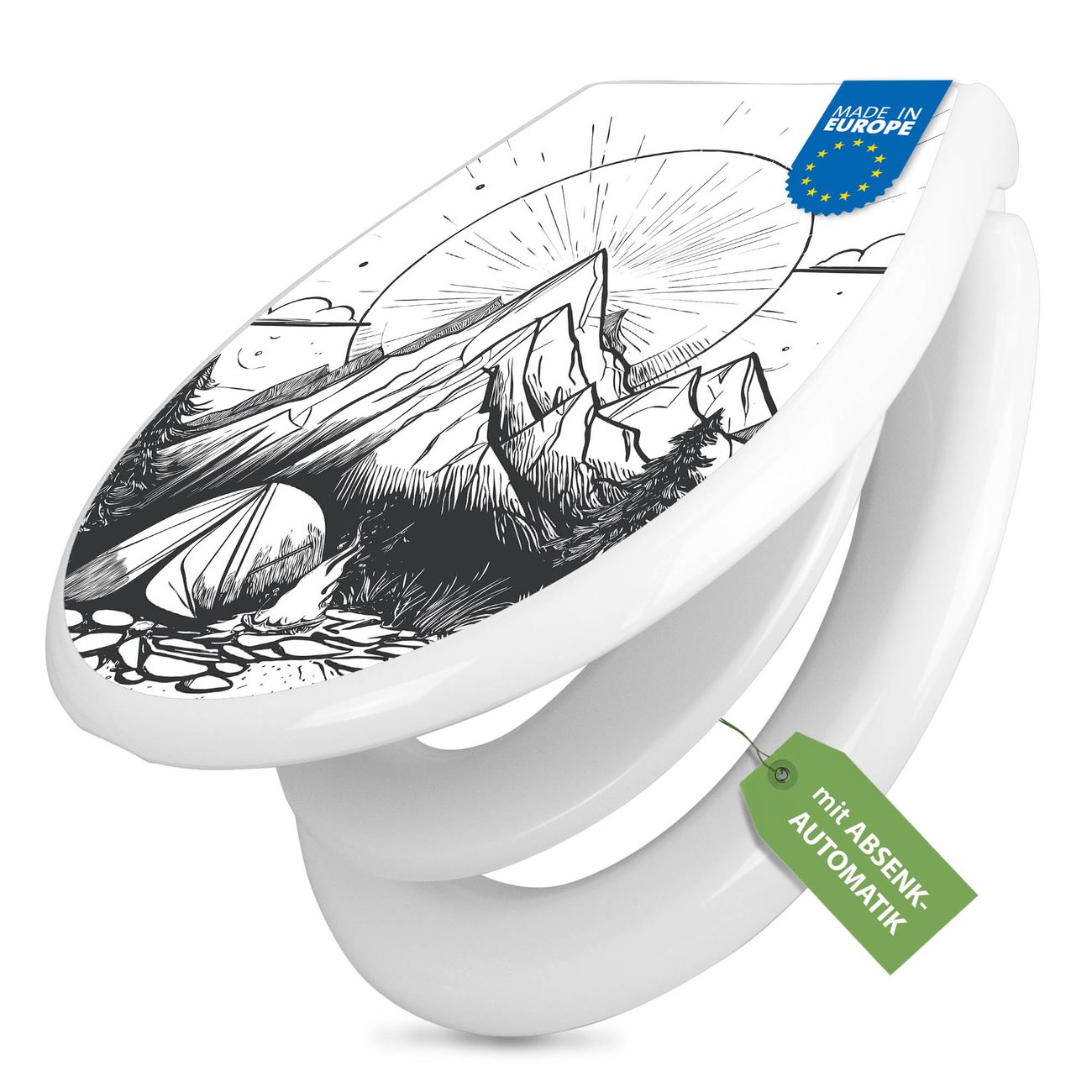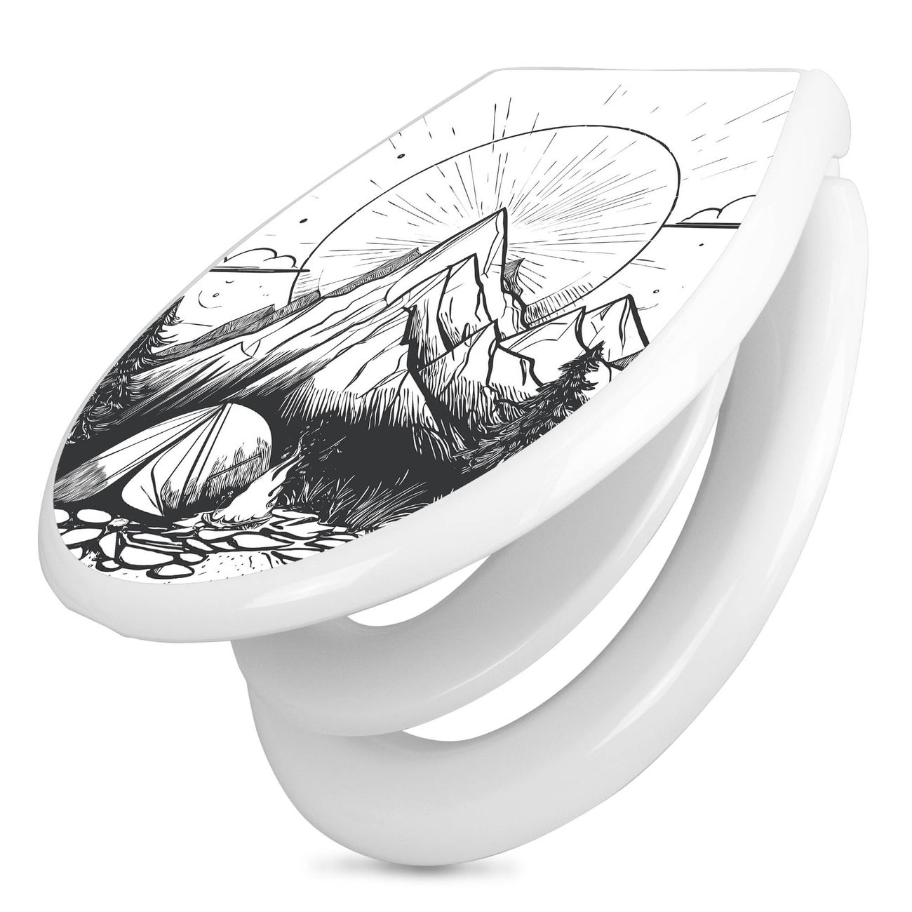 Toilettendeckel weiß mit Absenkautomatik Motiv Bergcamping Abenteuer 2