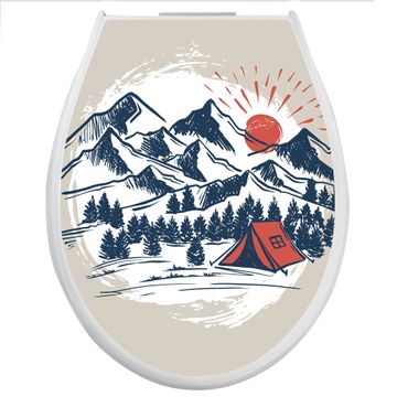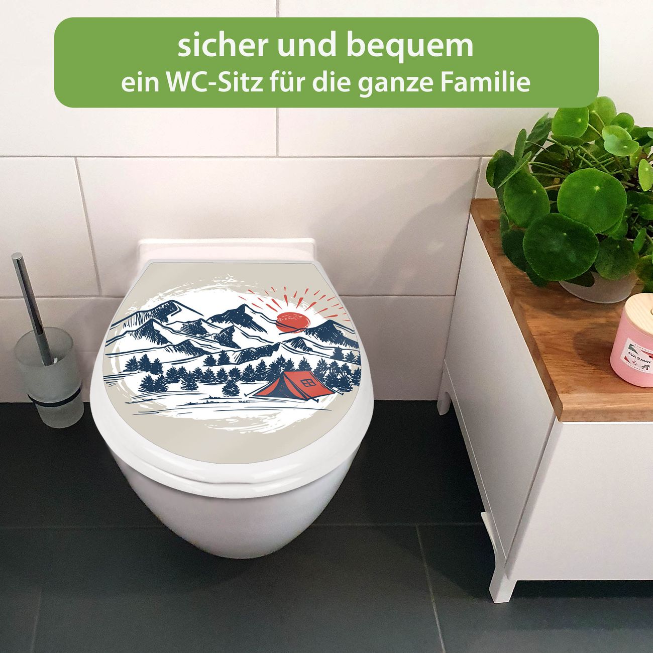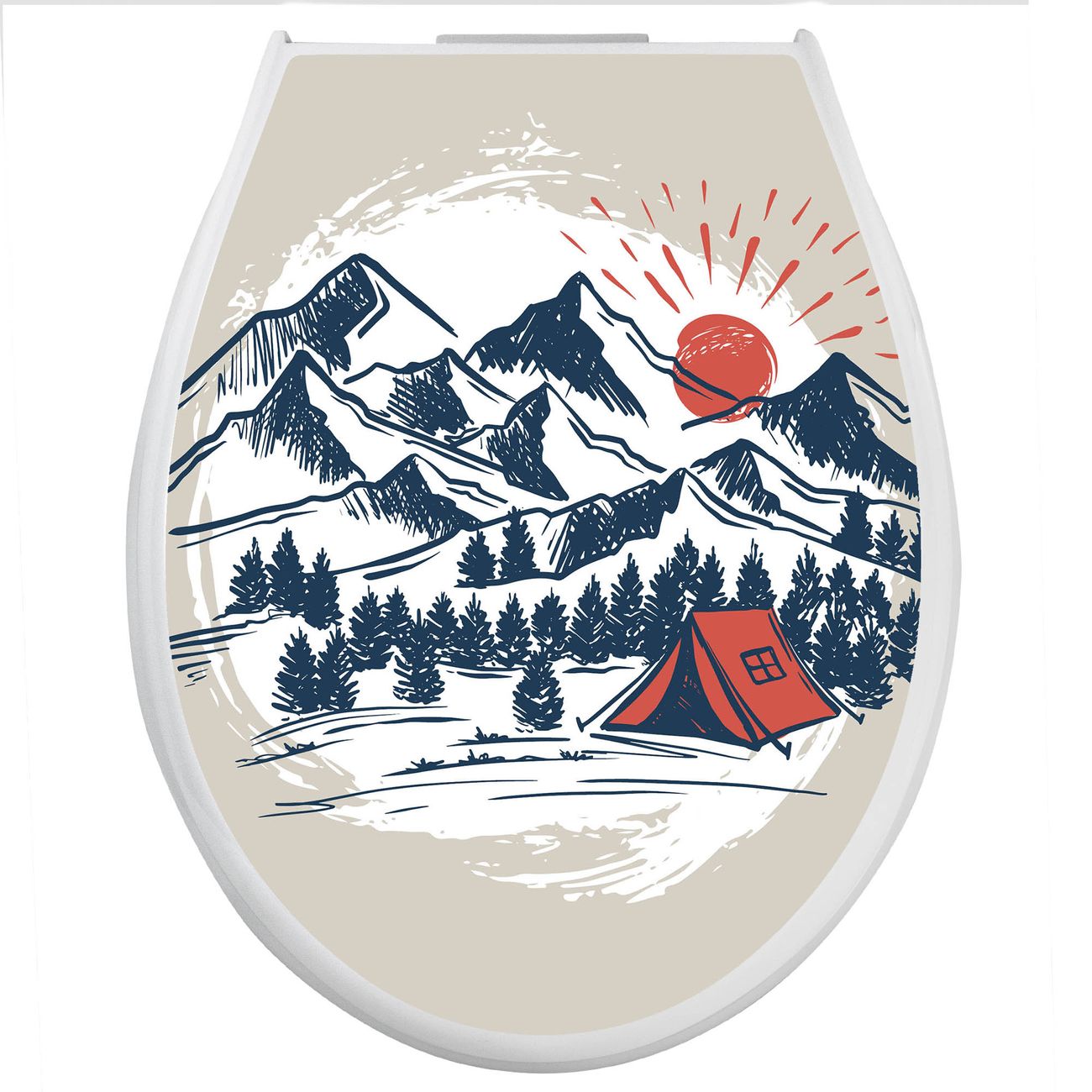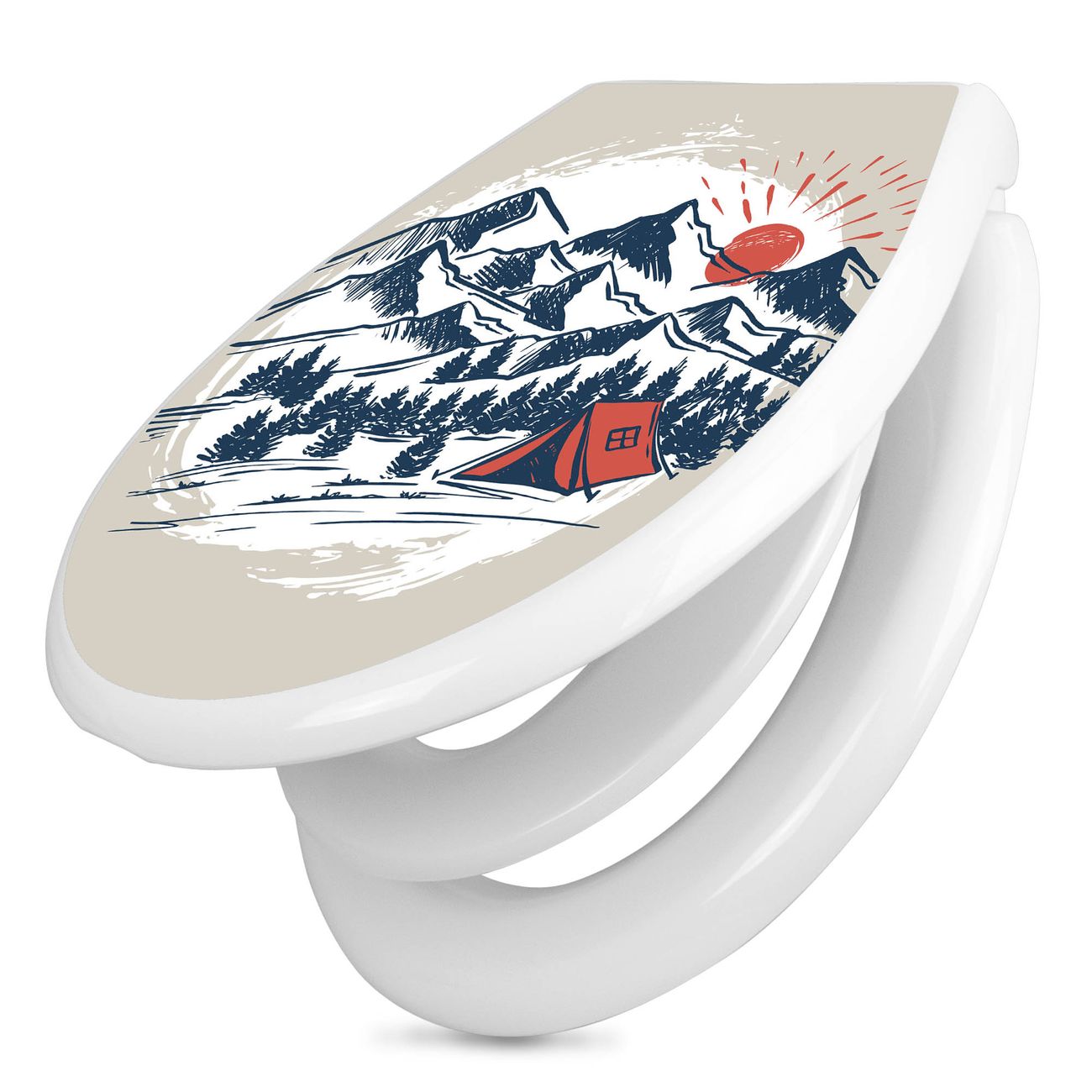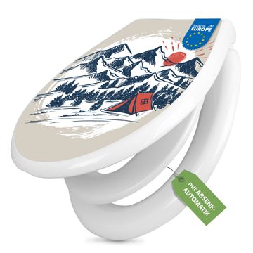 Toilettendeckel weiß mit Absenkautomatik Motiv Bergcamping Abenteuer