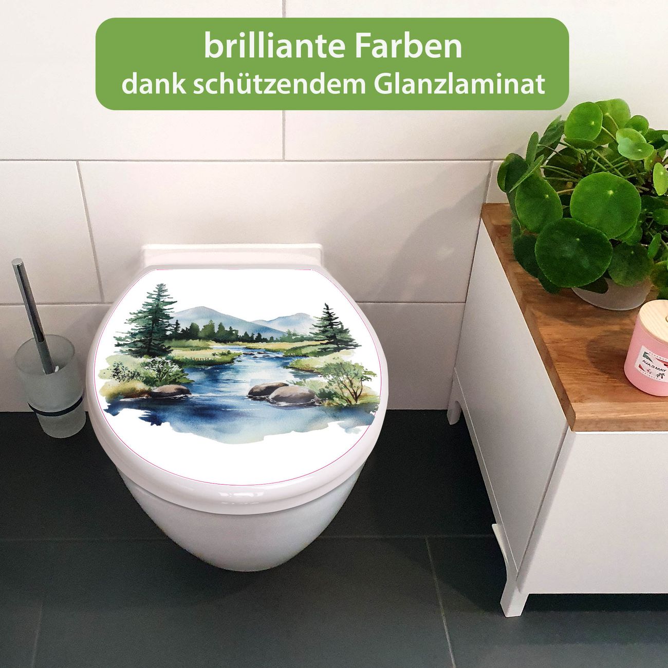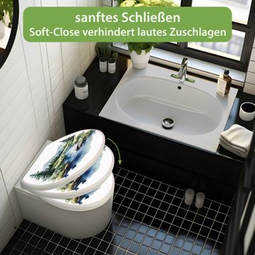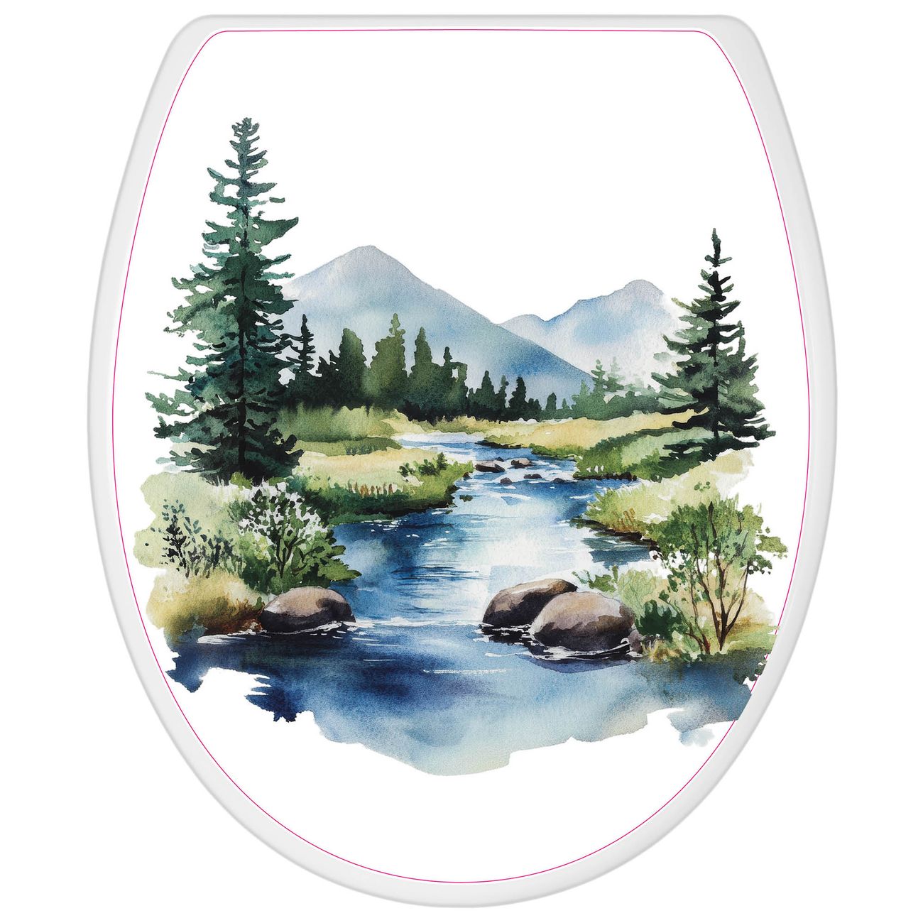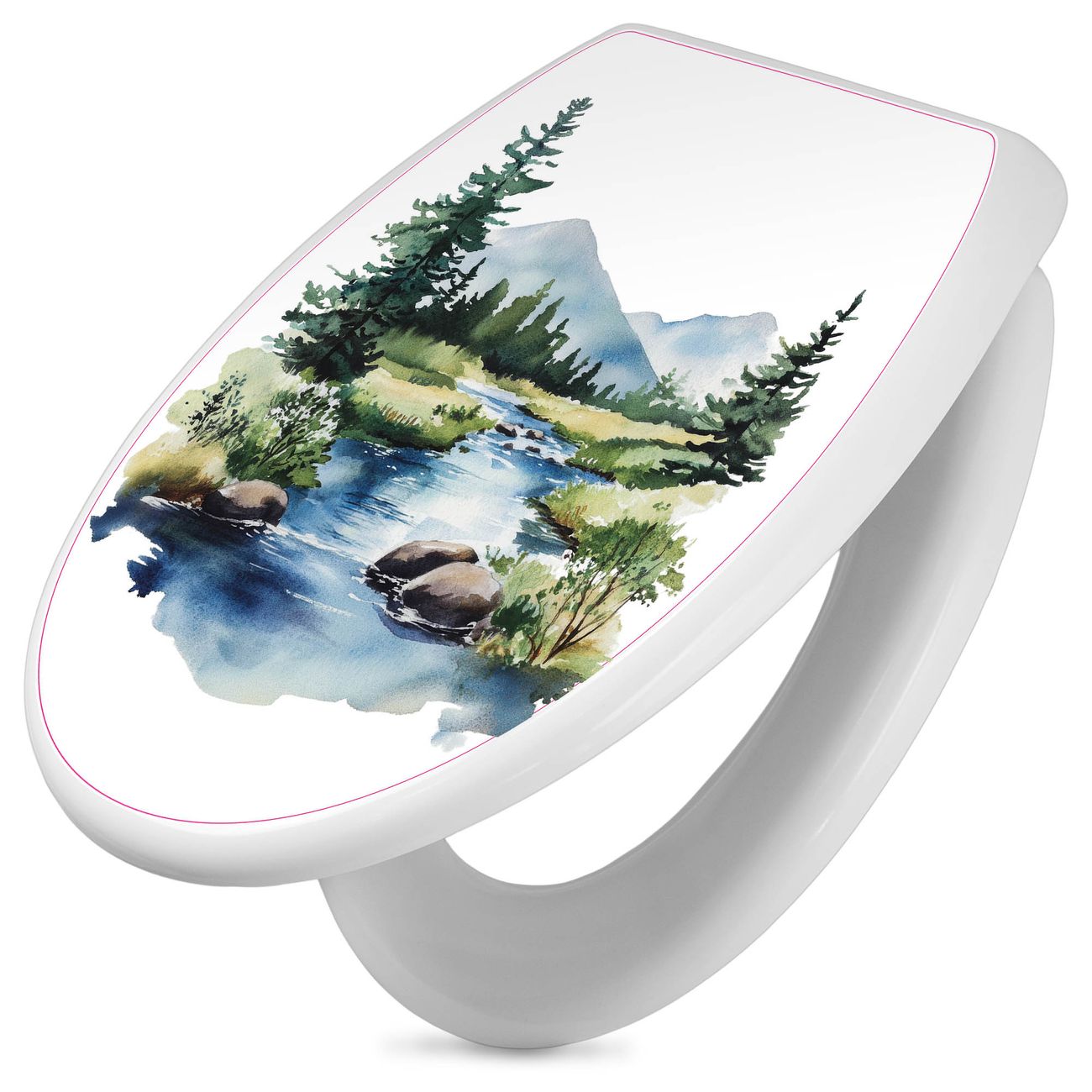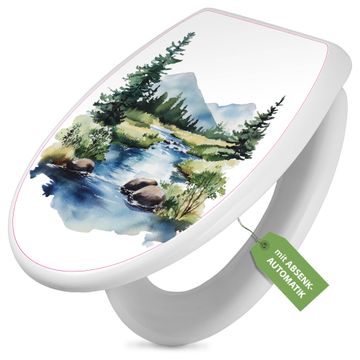 Toilettendeckel weiß mit Absenkautomatik Motiv Bergfluss in der Natur
