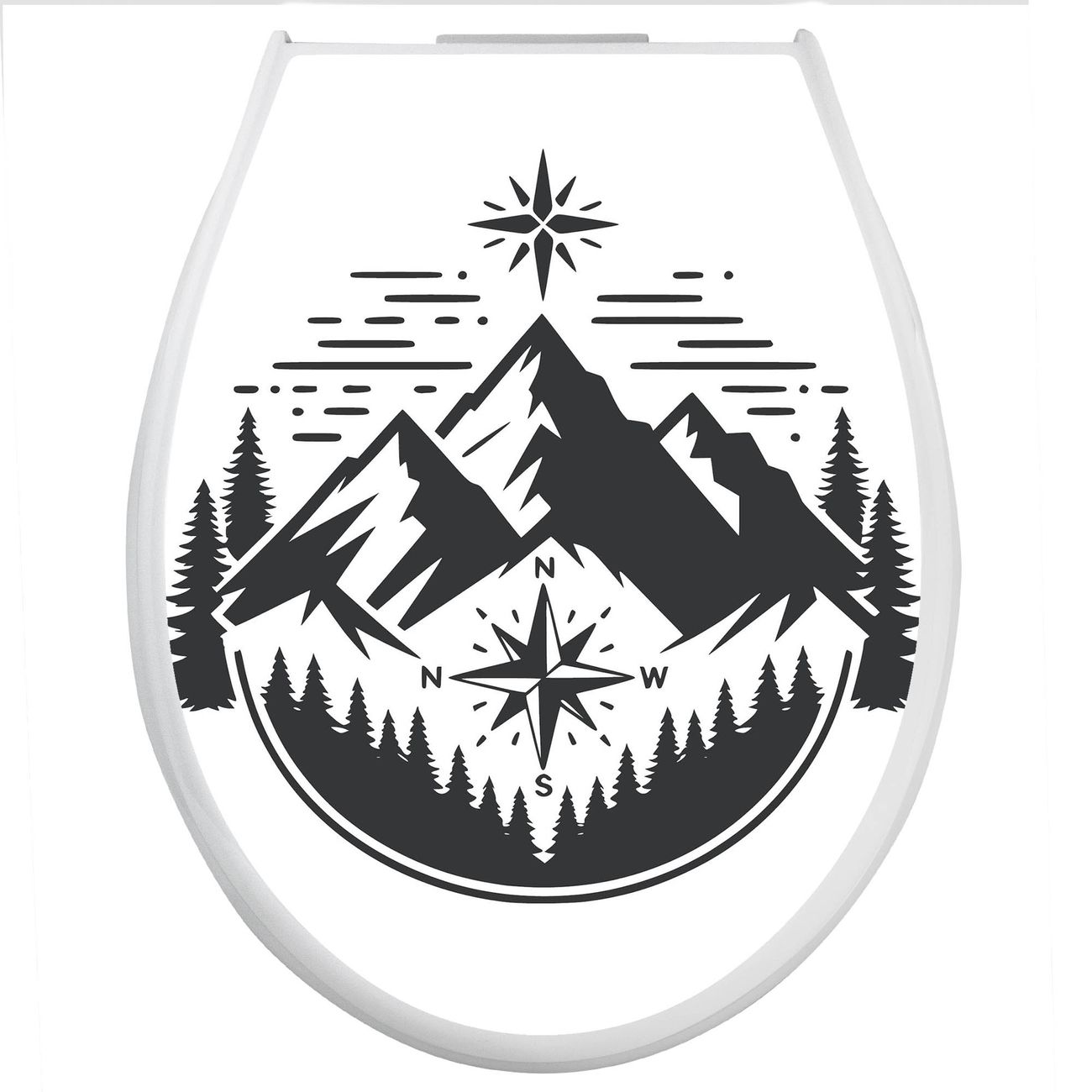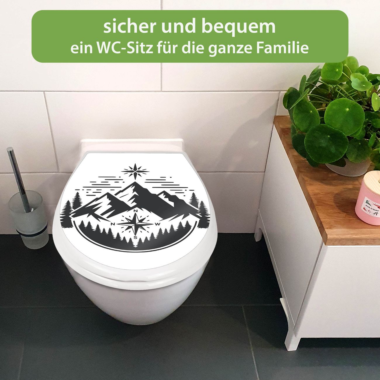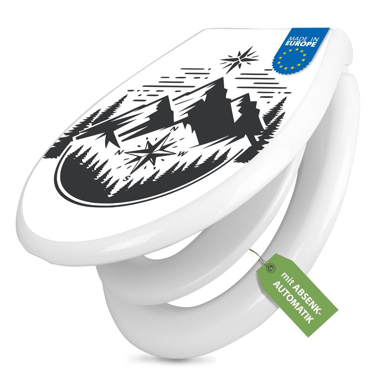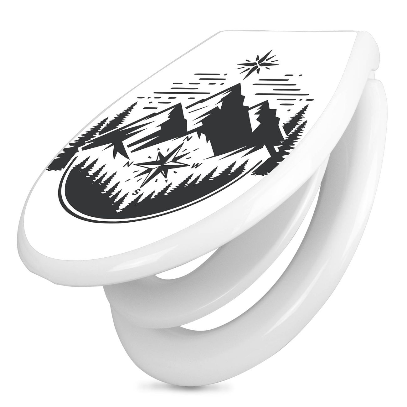 Toilettendeckel weiß mit Absenkautomatik Motiv Bergkompass