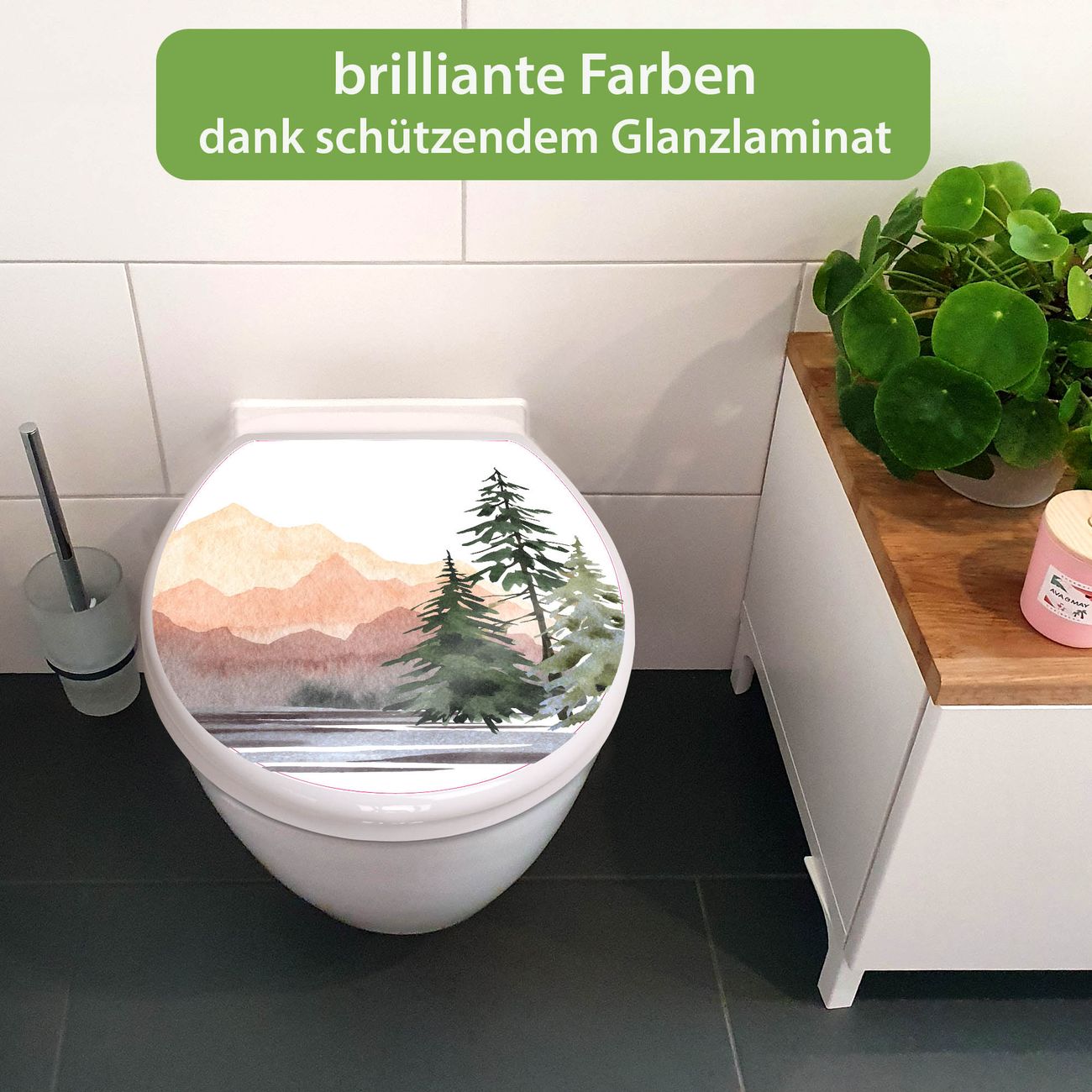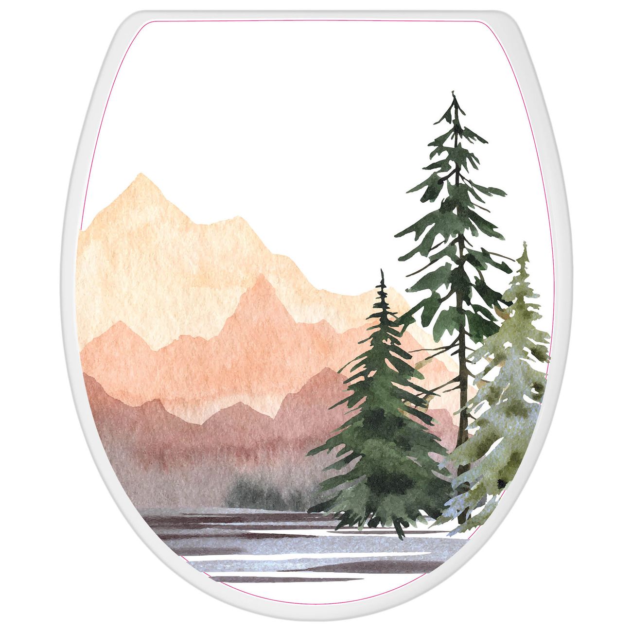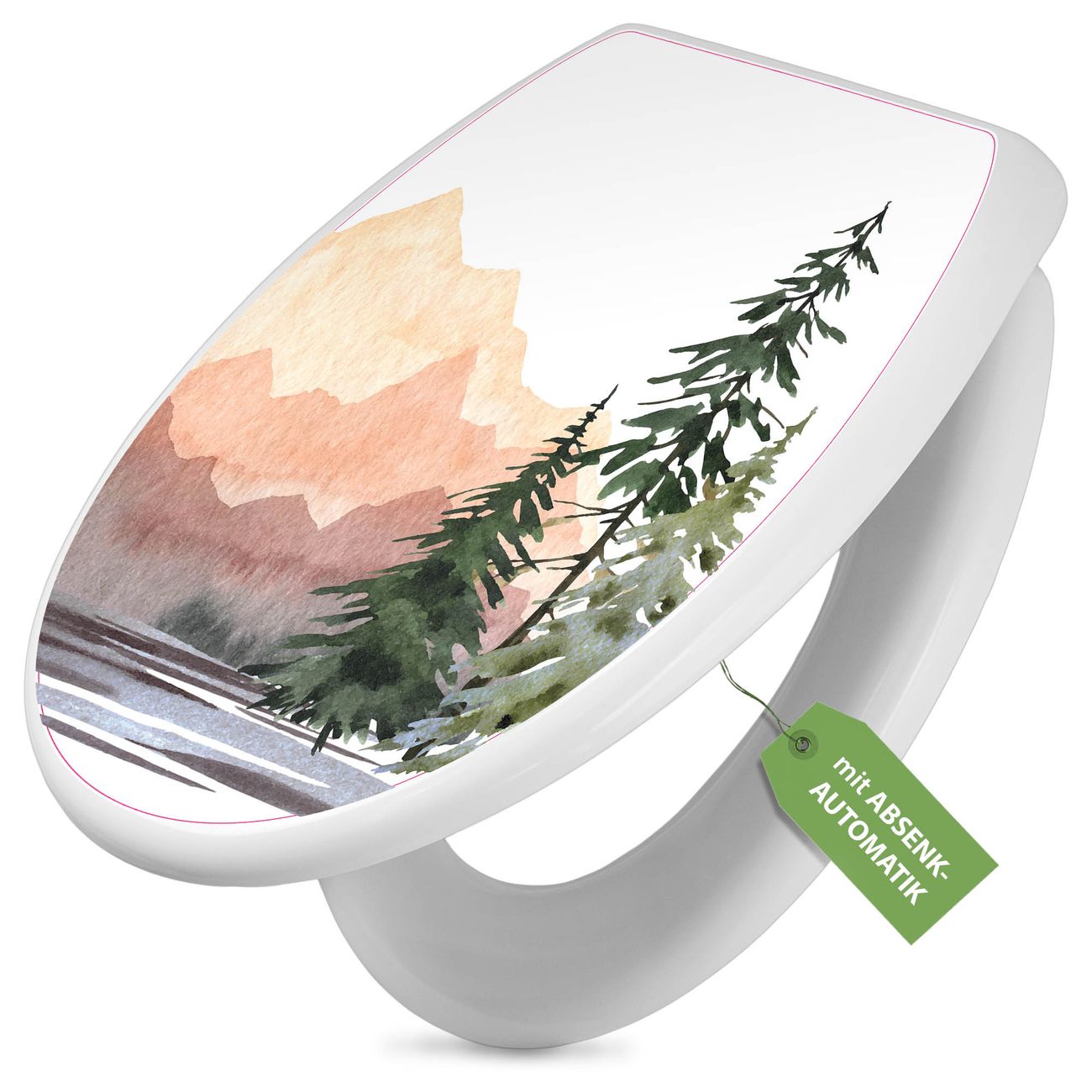 Toilettendeckel weiß mit Absenkautomatik Motiv Bergpanorama