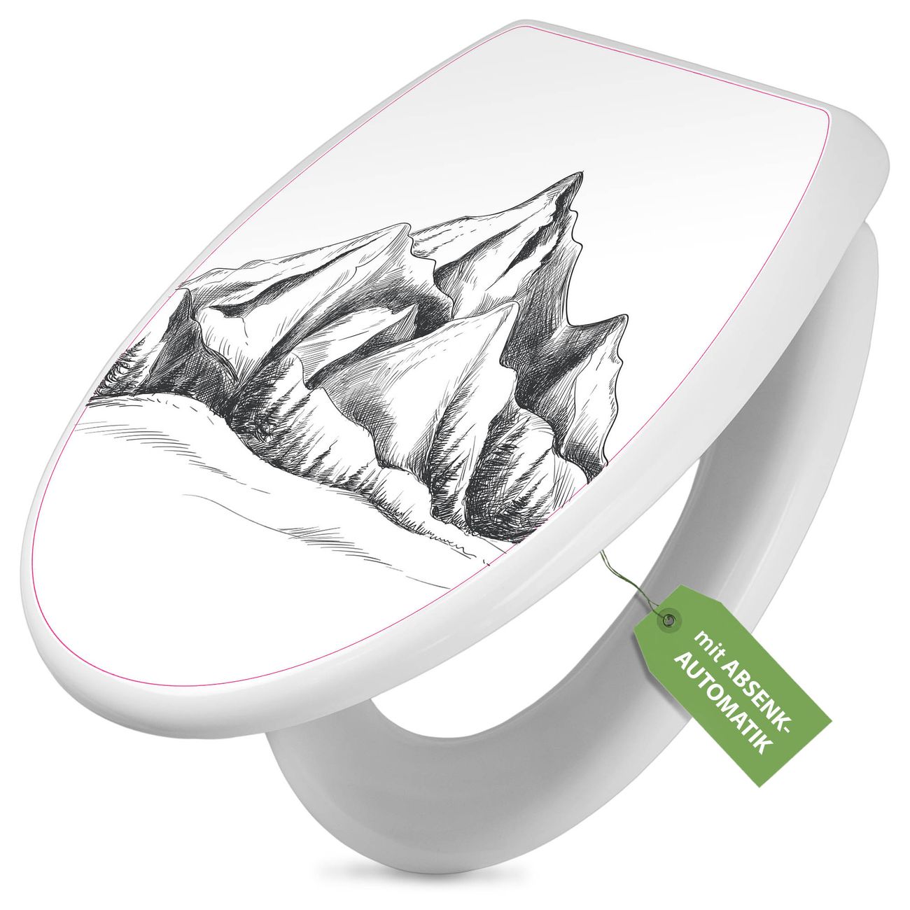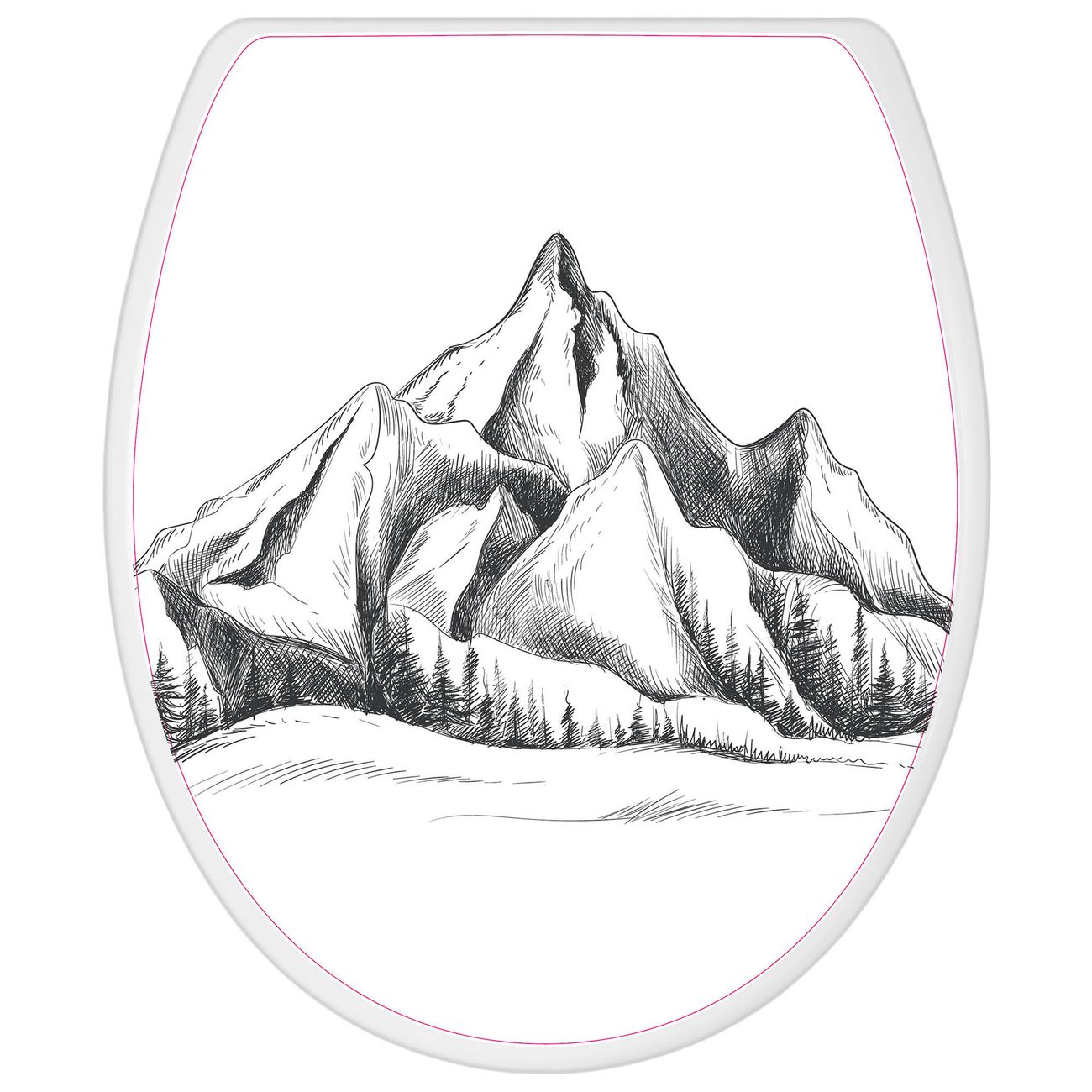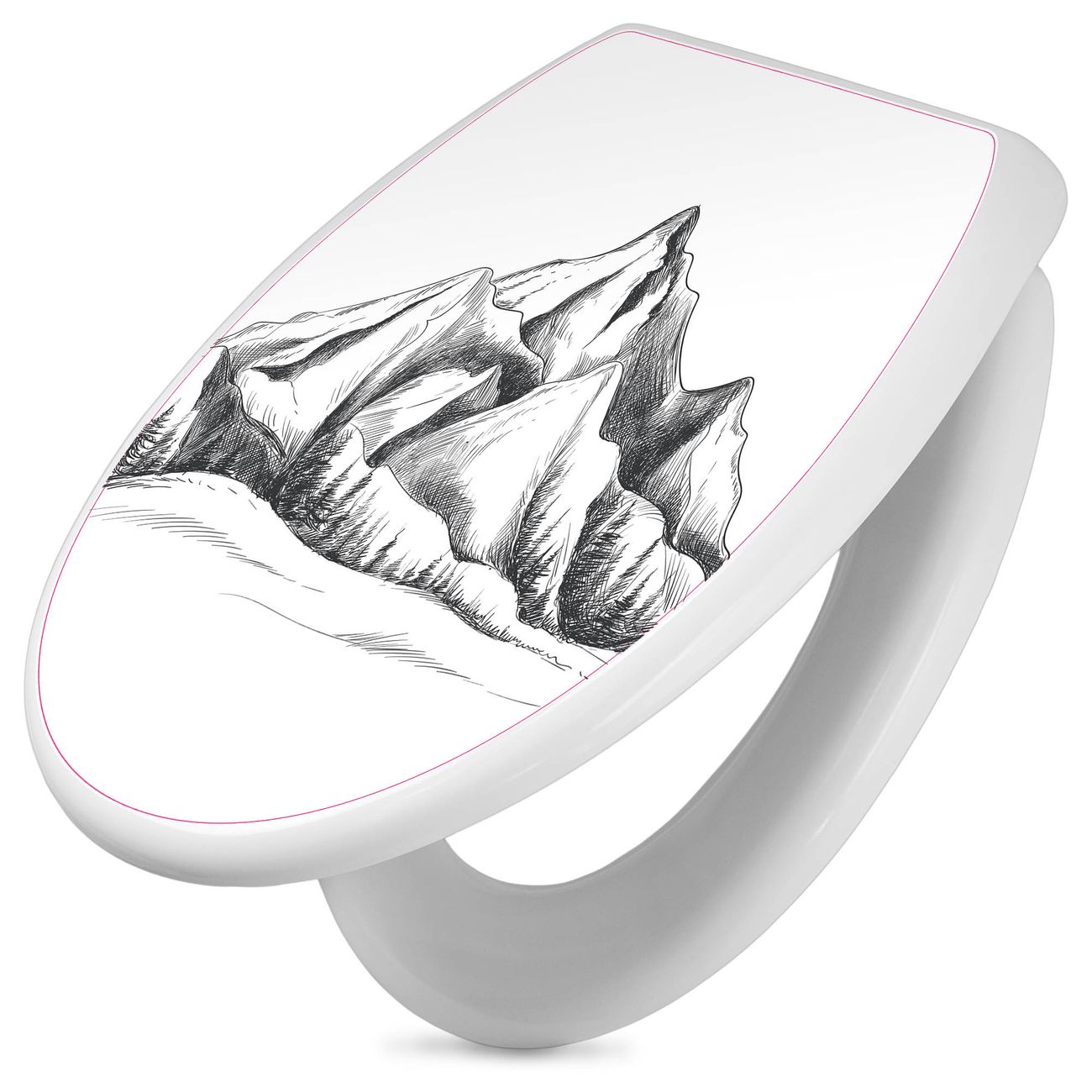 Toilettendeckel weiß mit Absenkautomatik Motiv Bergsilhouette