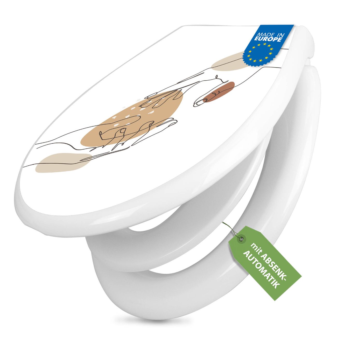 Toilettendeckel weiß mit Absenkautomatik Motiv Berührende Verbindung Lineart
