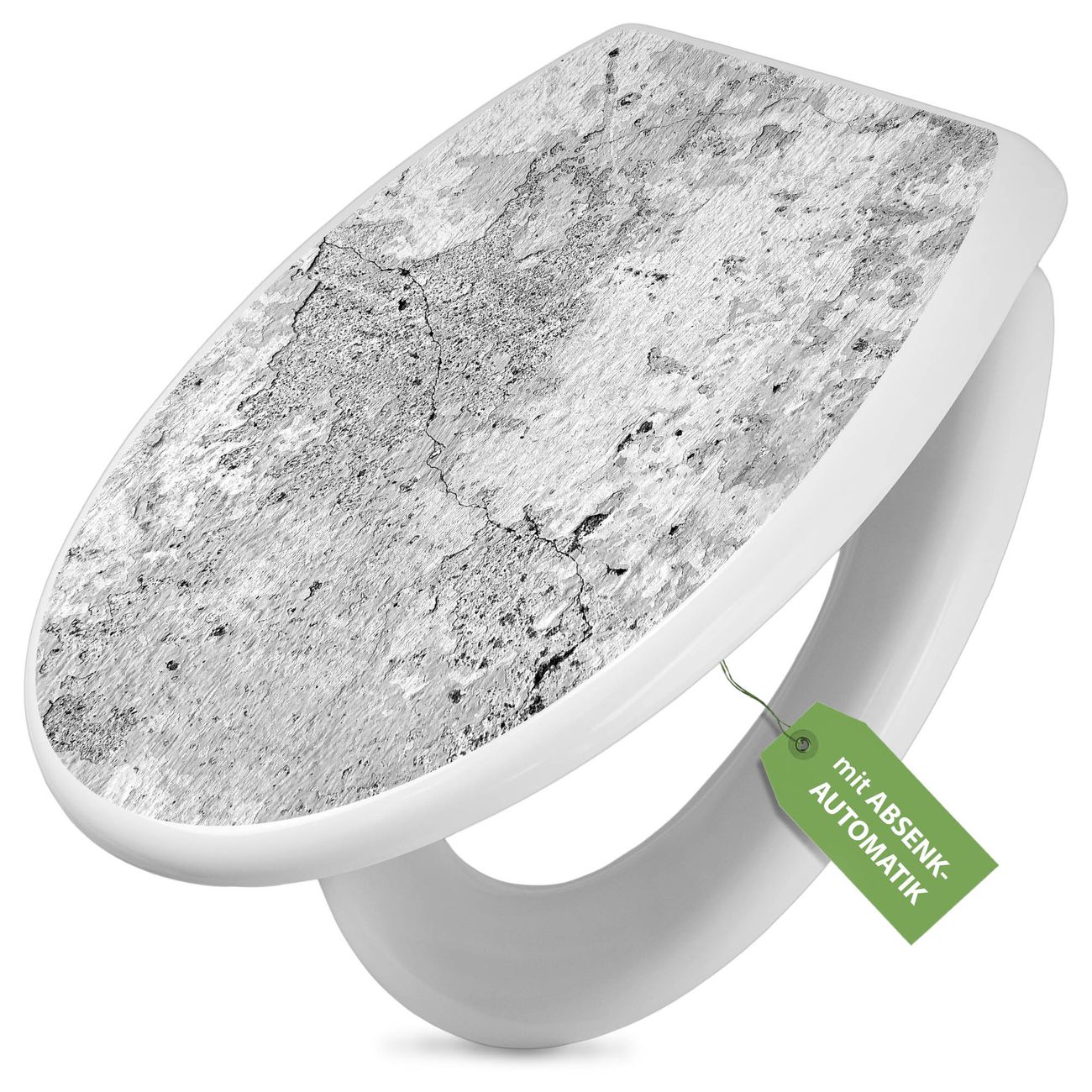Toilettendeckel weiß mit Absenkautomatik Motiv Betontextur Grau 2