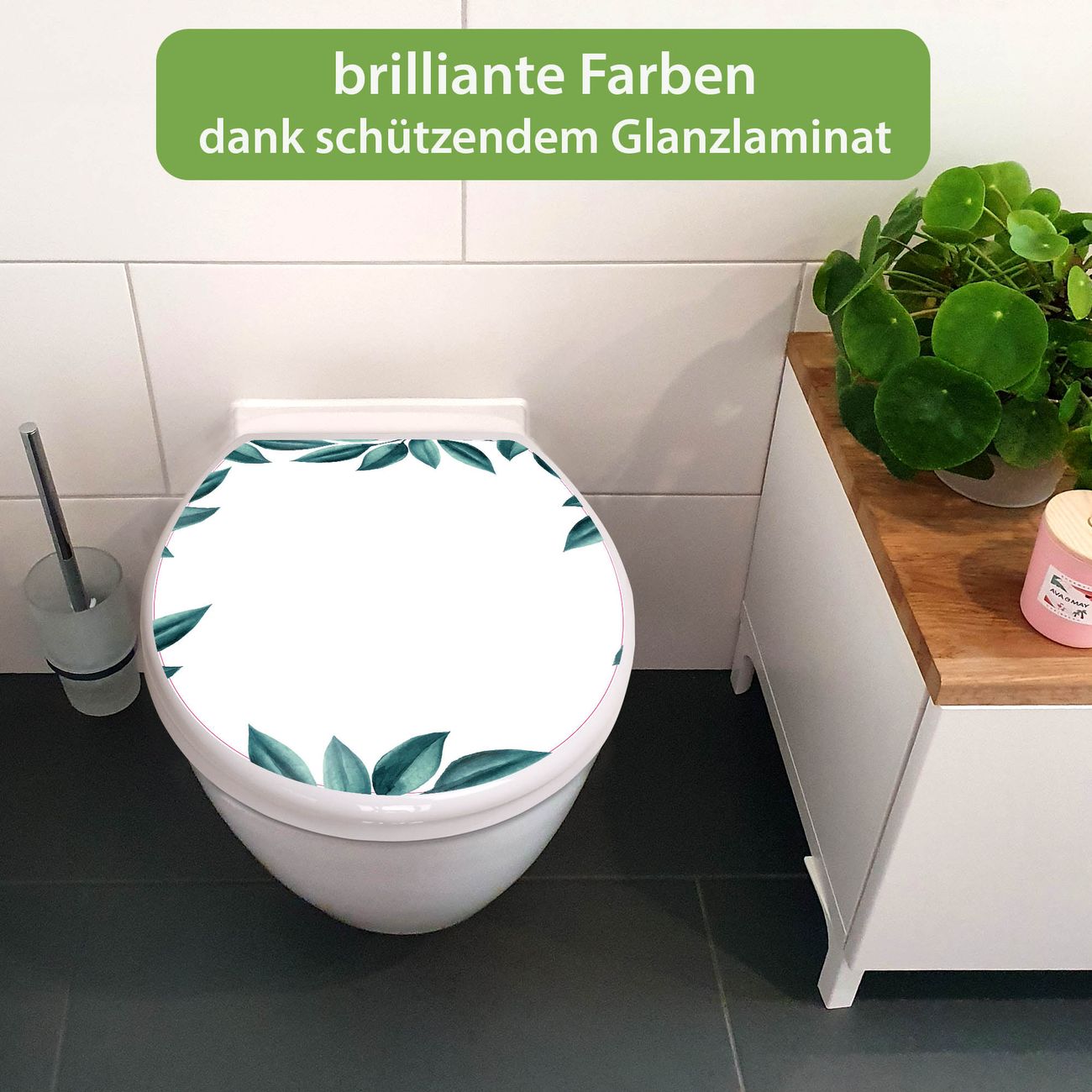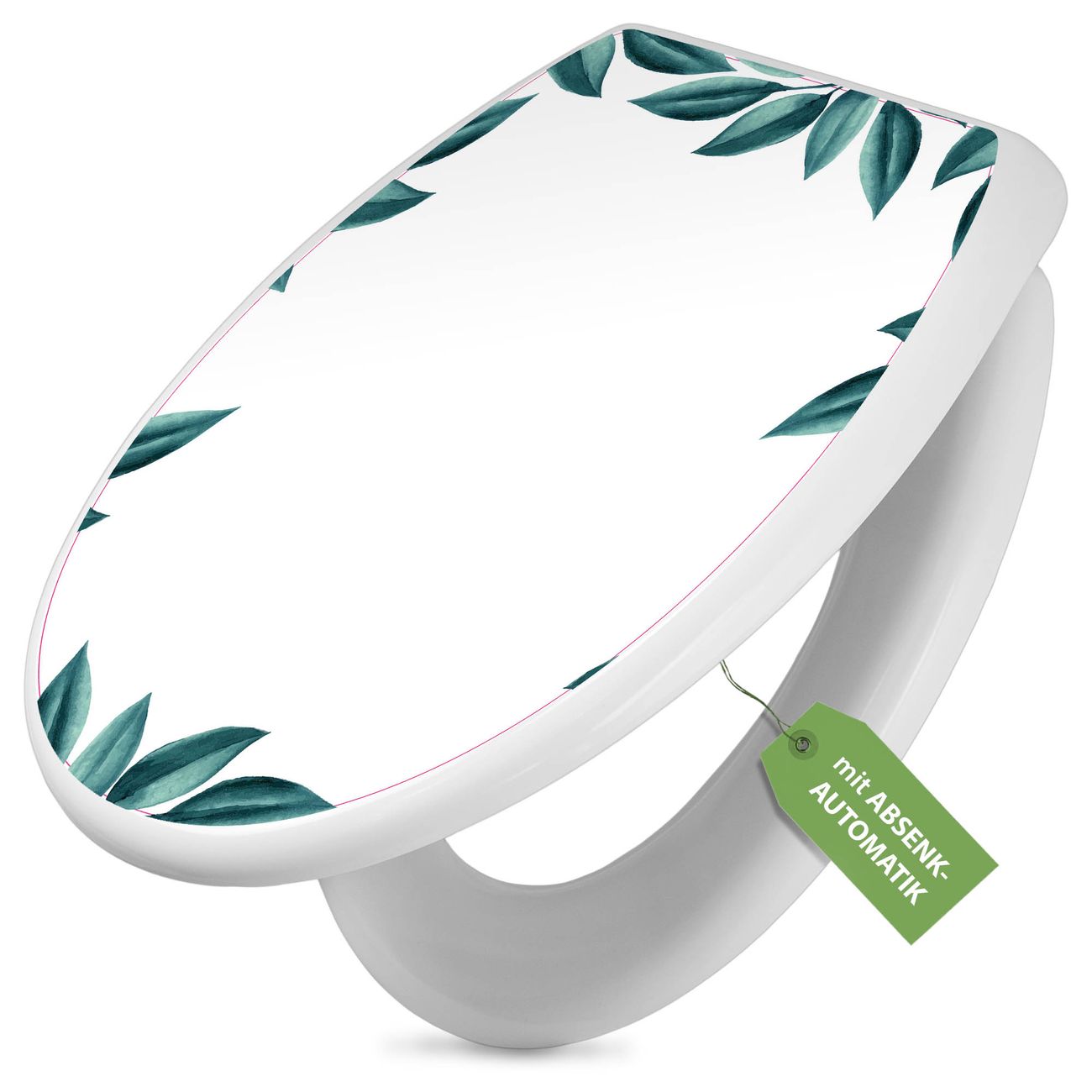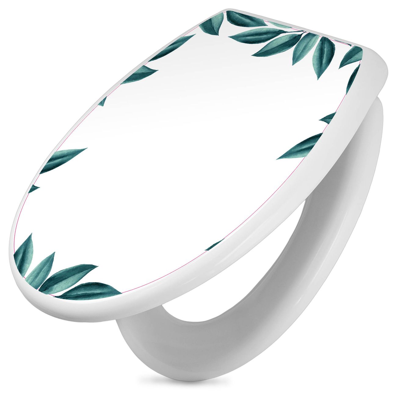 Toilettendeckel weiß mit Absenkautomatik Motiv Blätterrahmen