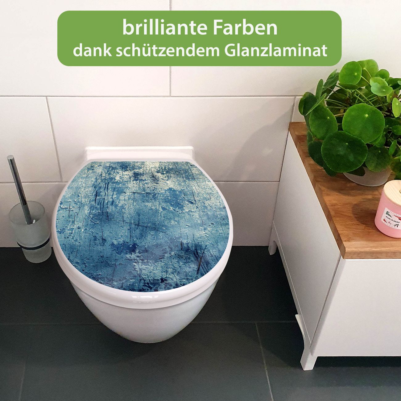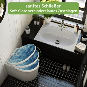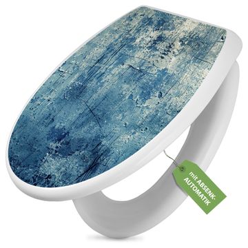 Toilettendeckel weiß mit Absenkautomatik Motiv Blaue Wandtextur