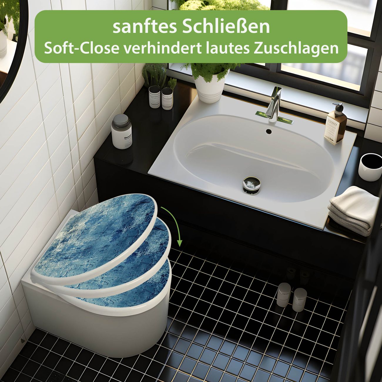 - Material: WC-Sitz und Deckel aus robustem Duroplast