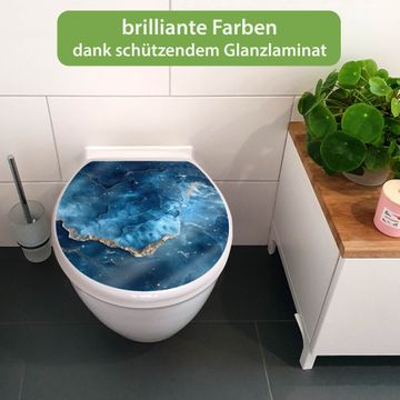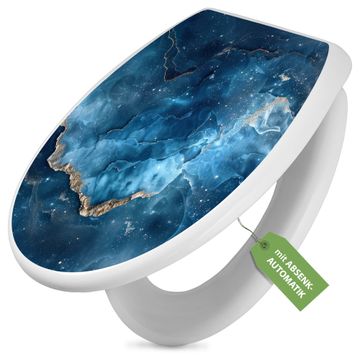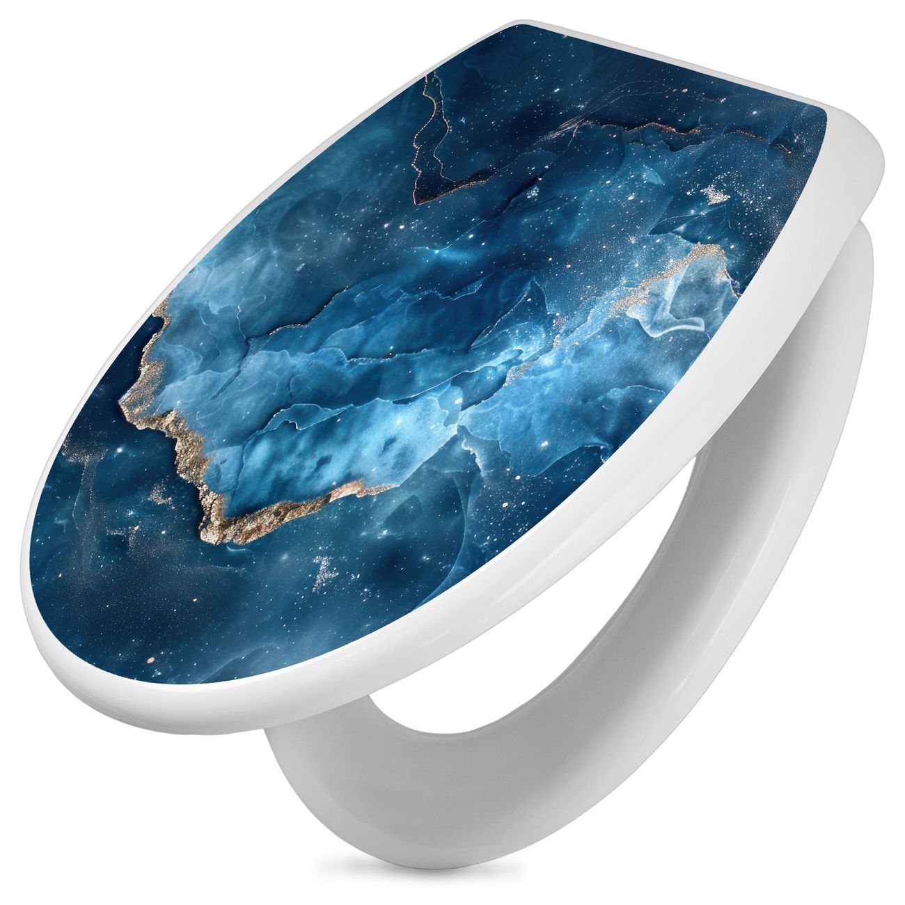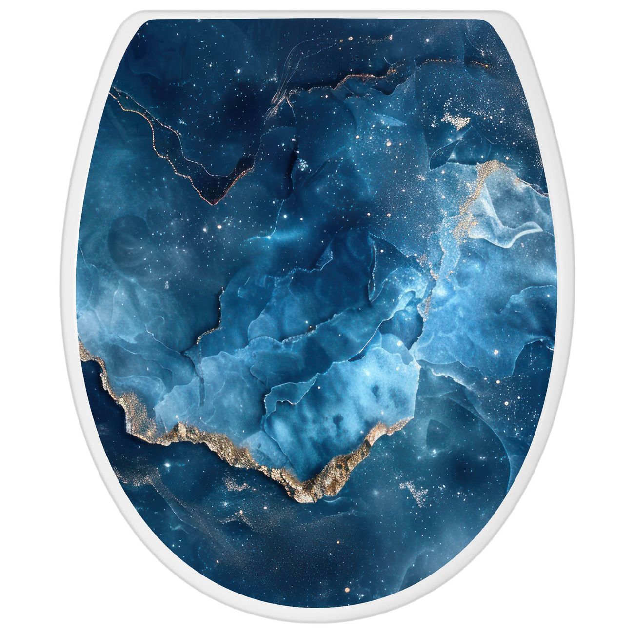 Toilettendeckel weiß mit Absenkautomatik Motiv Blauer Marmor mit Gold 1