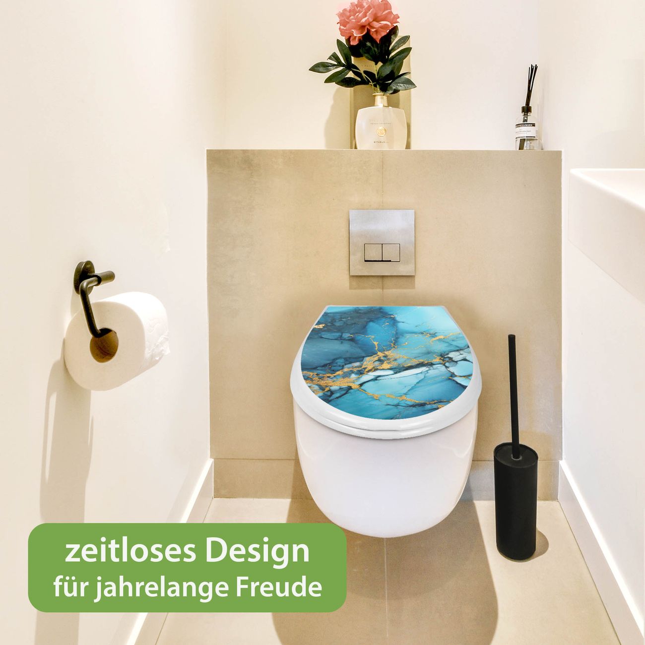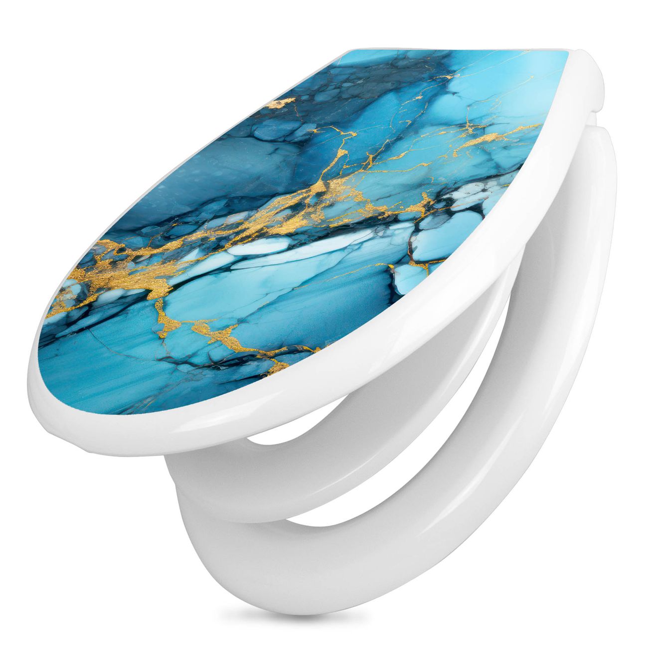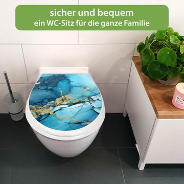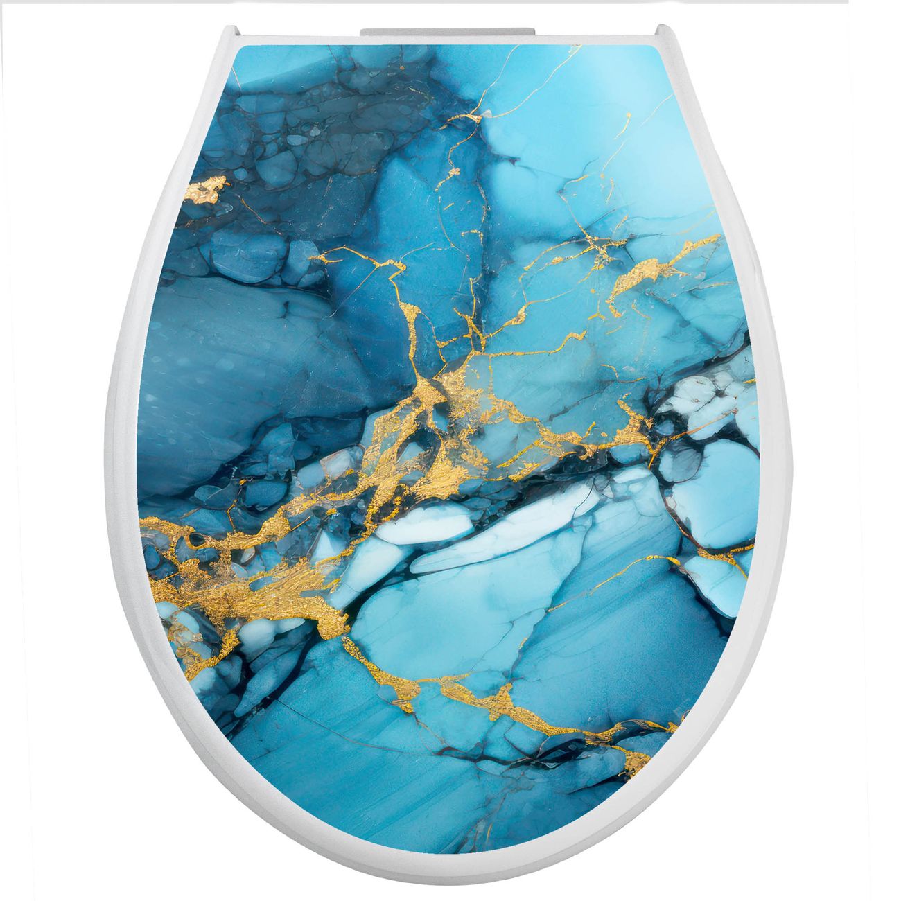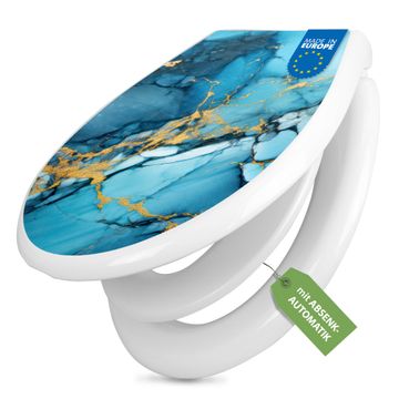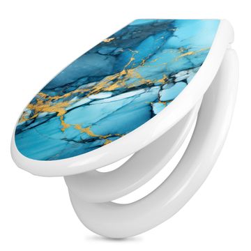 Toilettendeckel weiß mit Absenkautomatik Motiv Blauer Marmor mit Gold 2