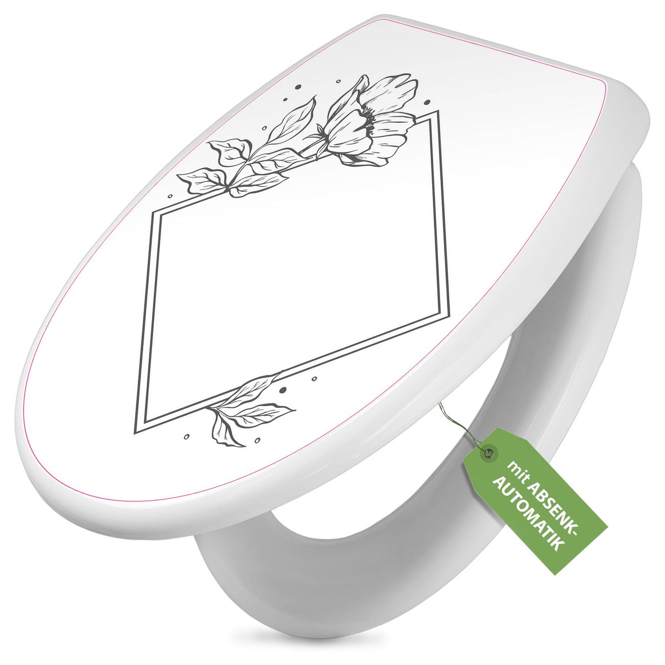 Toilettendeckel weiß mit Absenkautomatik Motiv Blütenrahmen