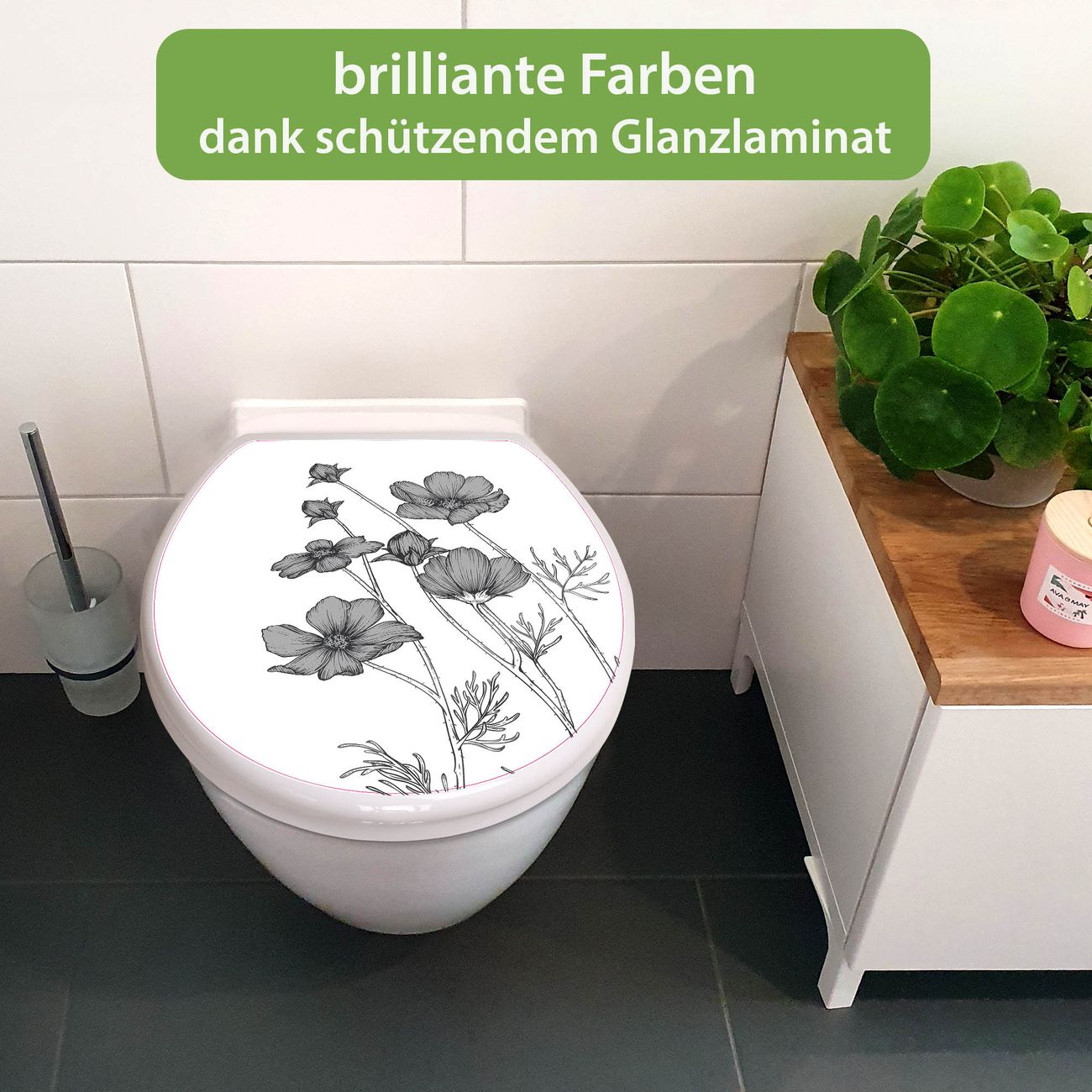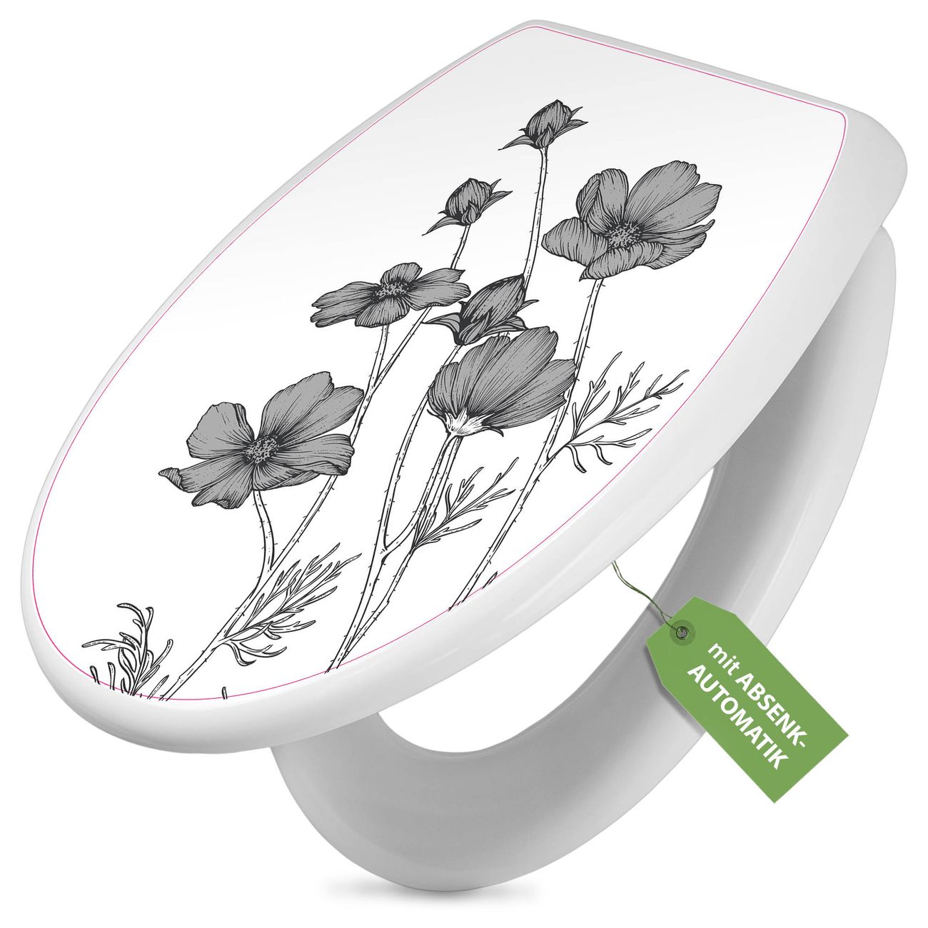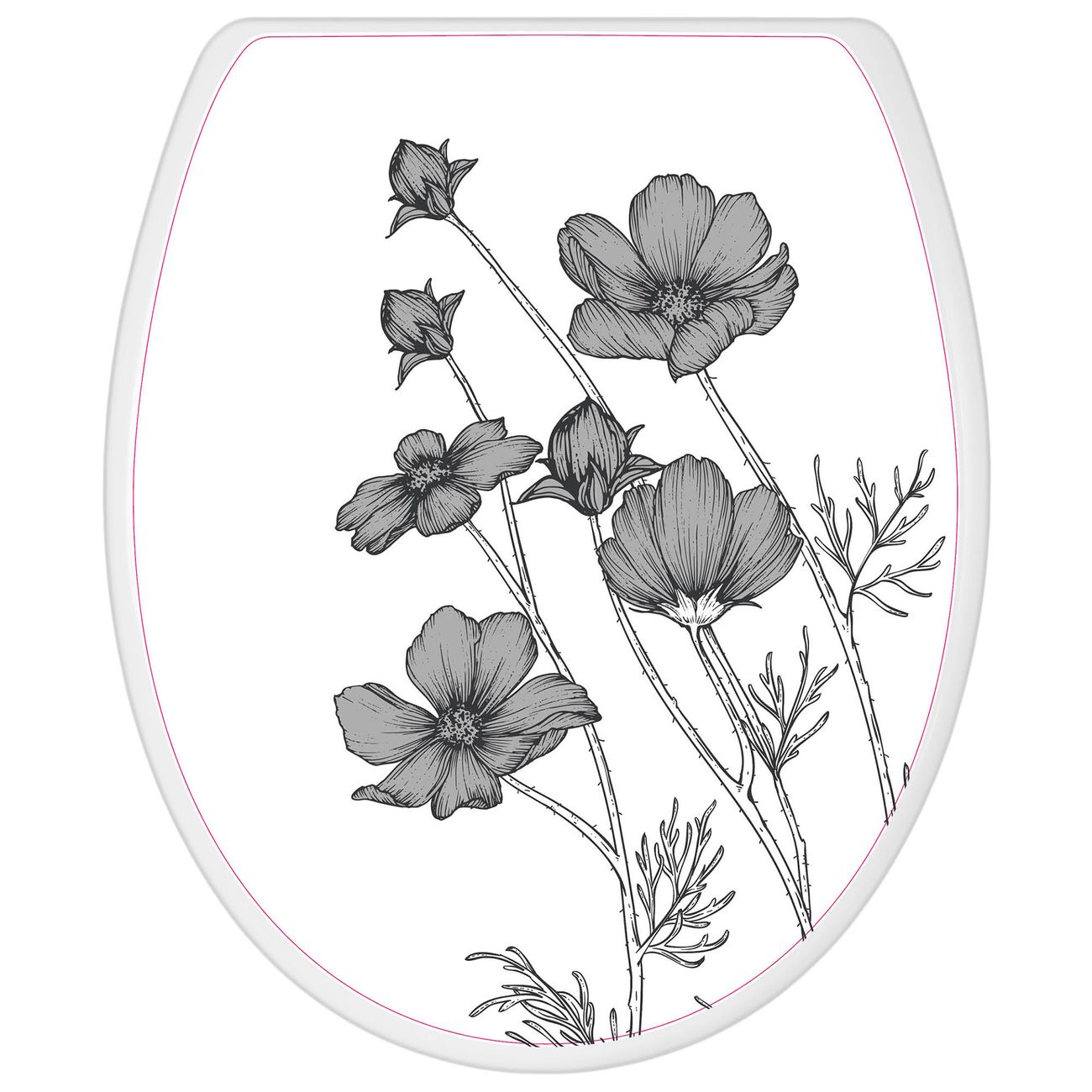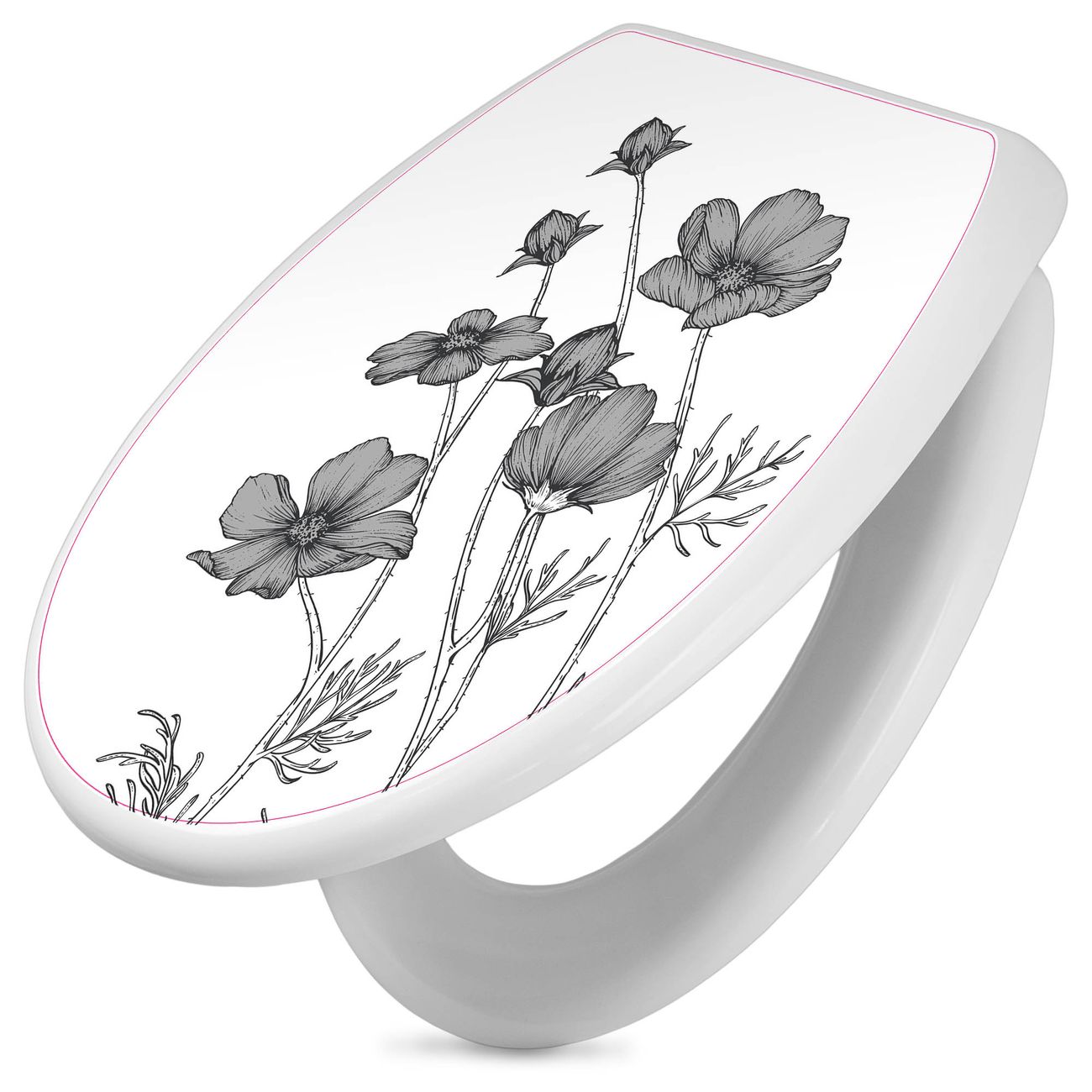 Toilettendeckel weiß mit Absenkautomatik Motiv Blumen in Schwarz-Weiß