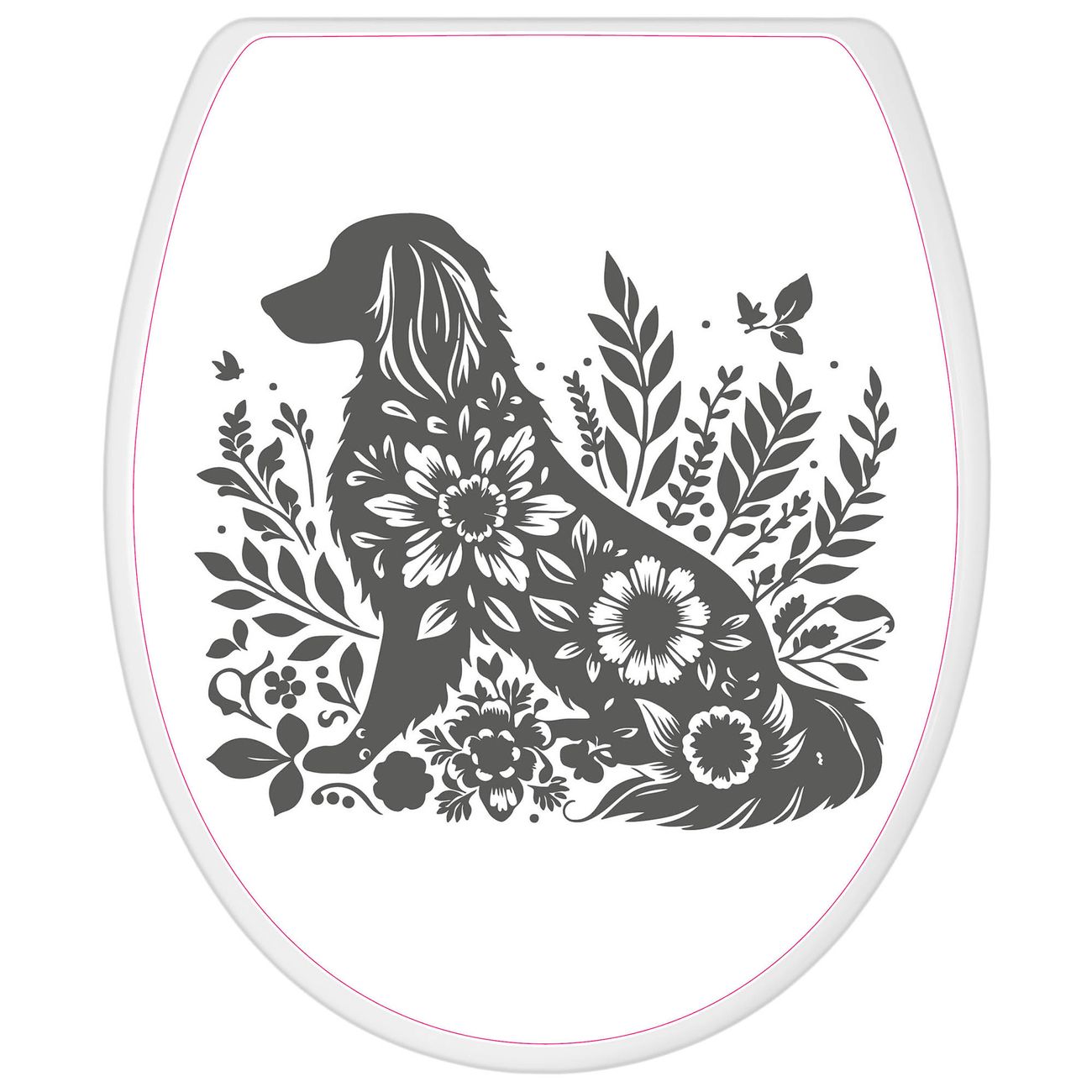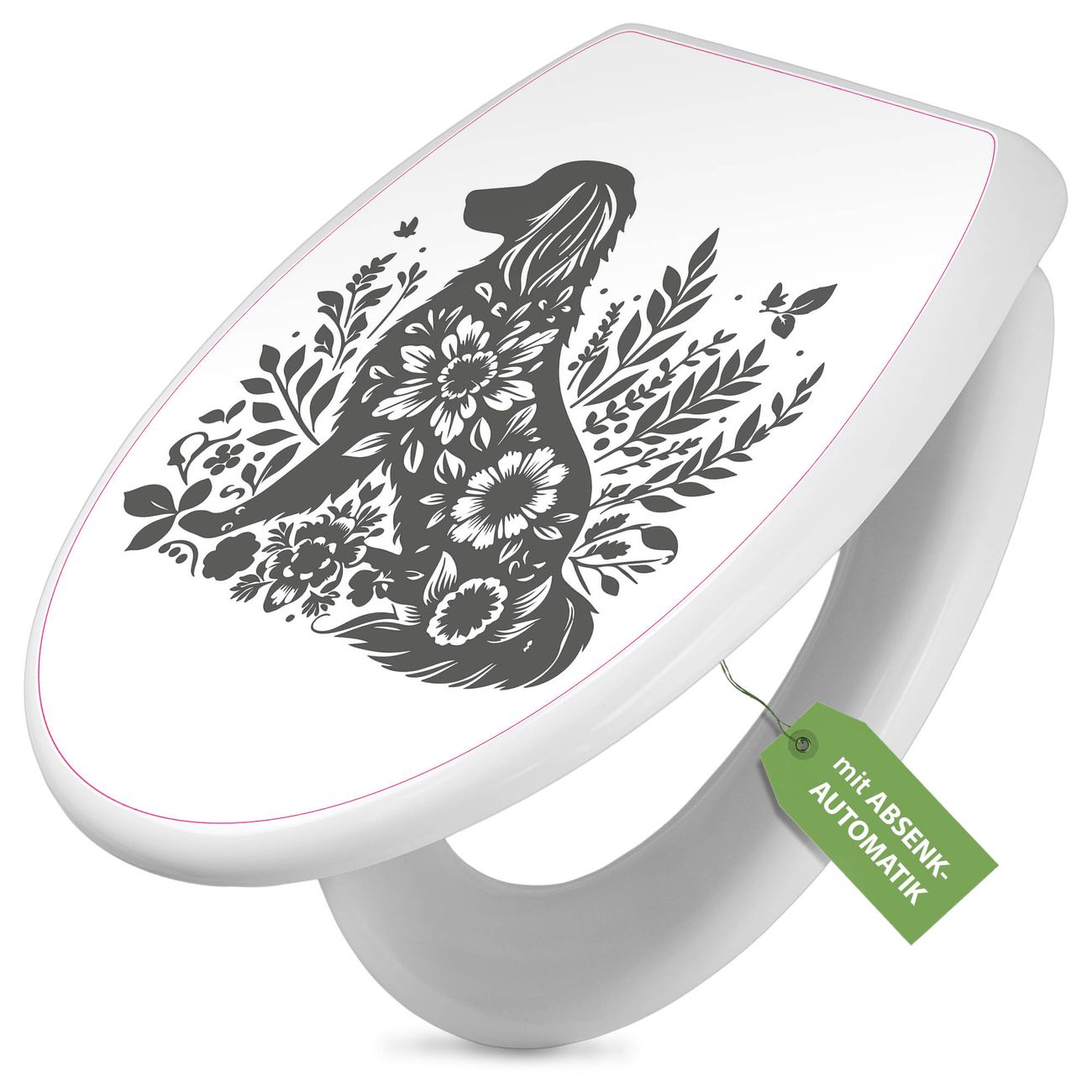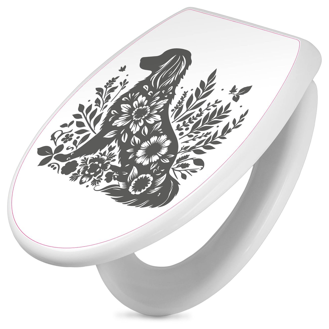 Toilettendeckel weiß mit Absenkautomatik Motiv Blumenhund Silhouette