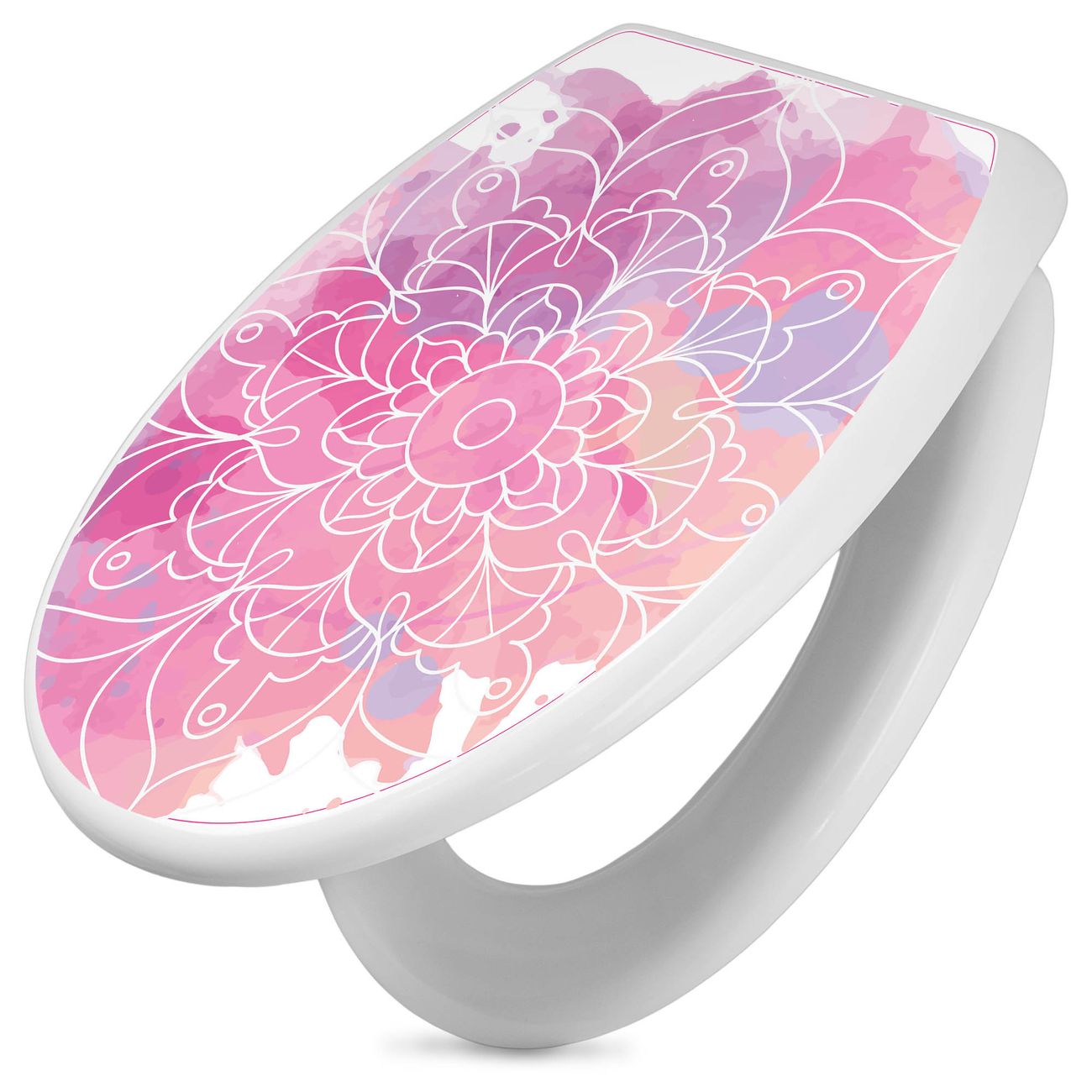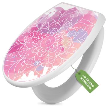 Toilettendeckel weiß mit Absenkautomatik Motiv Blumenmandala