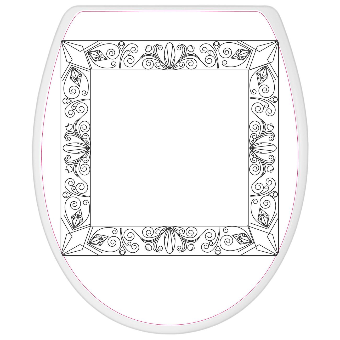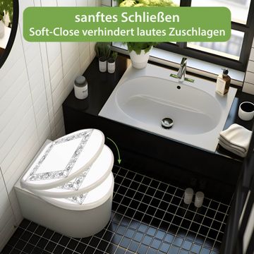 Toilettendeckel weiß mit Absenkautomatik Motiv Blumenornament-Rahmen