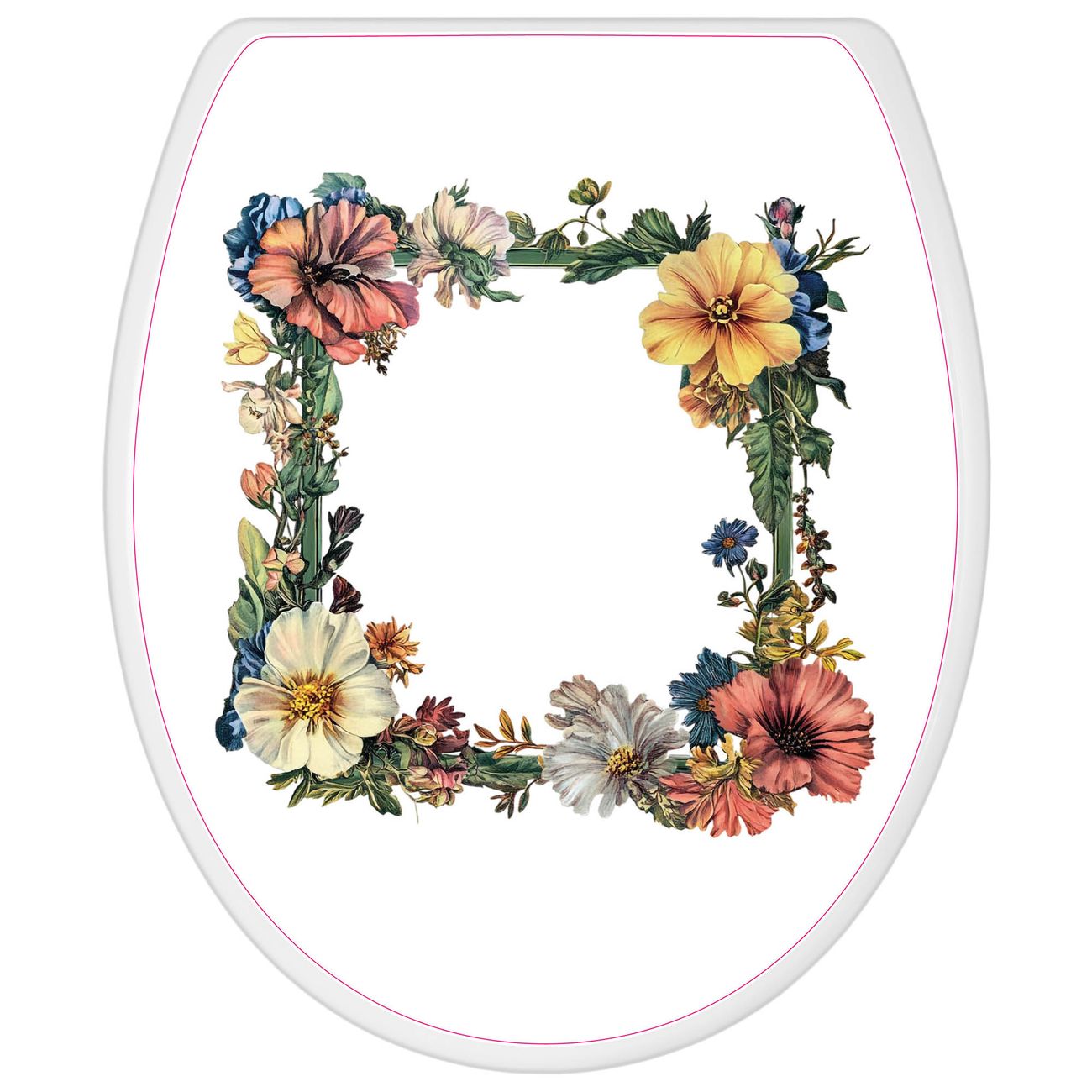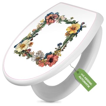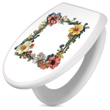 Toilettendeckel weiß mit Absenkautomatik Motiv Blumenrahmen
