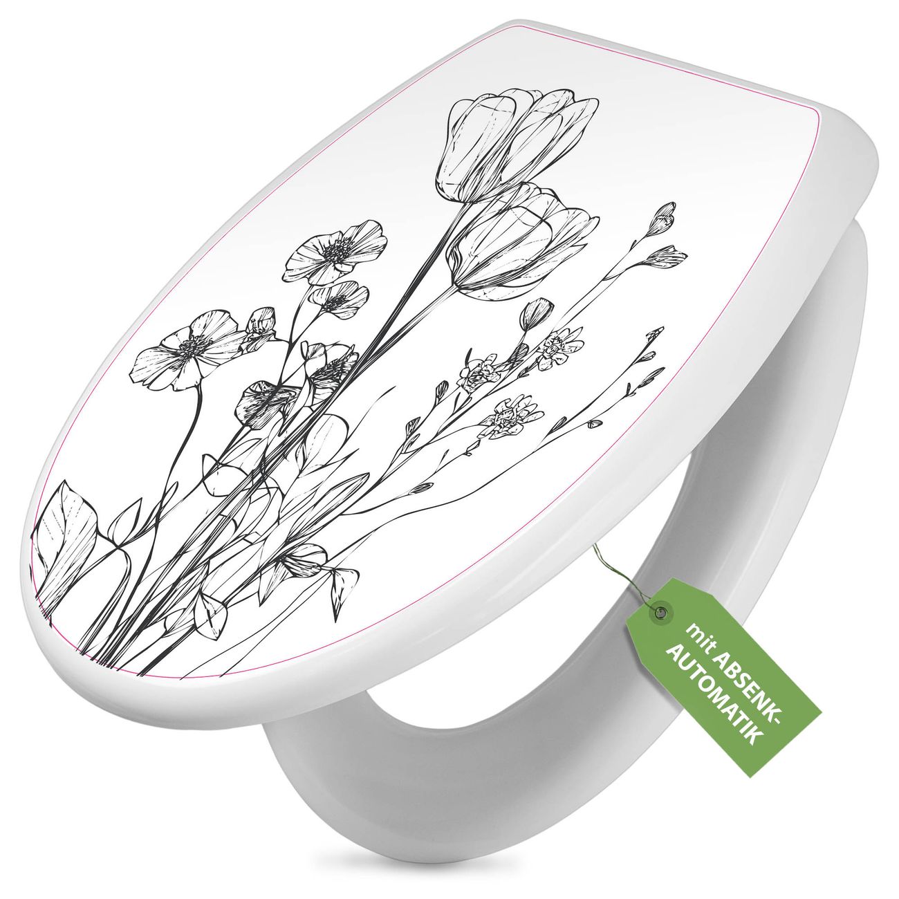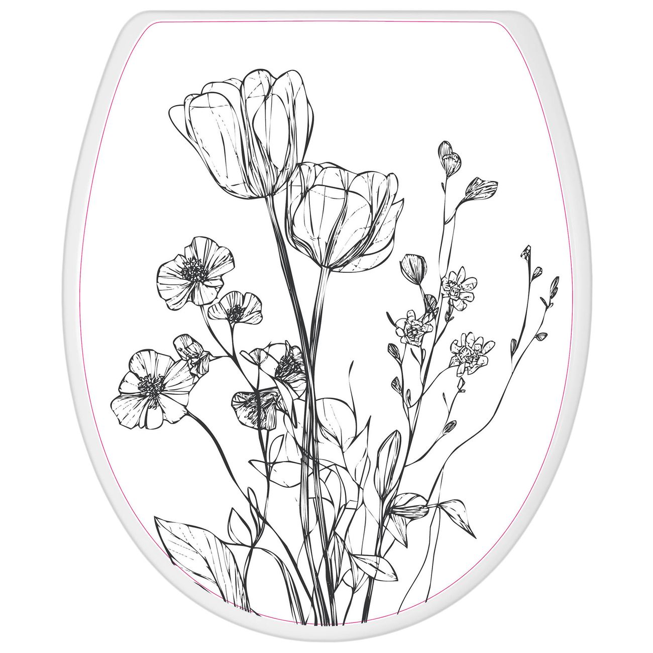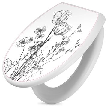 Toilettendeckel weiß mit Absenkautomatik Motiv Blumenskizze
