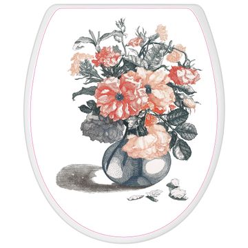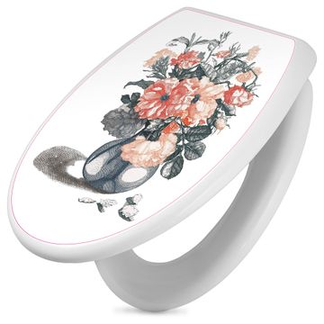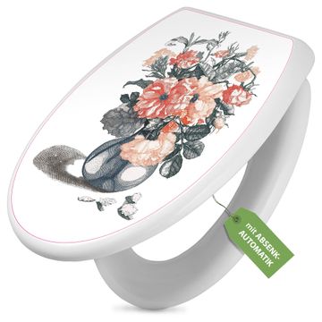 Toilettendeckel weiß mit Absenkautomatik Motiv Blumenstrauß Vintage