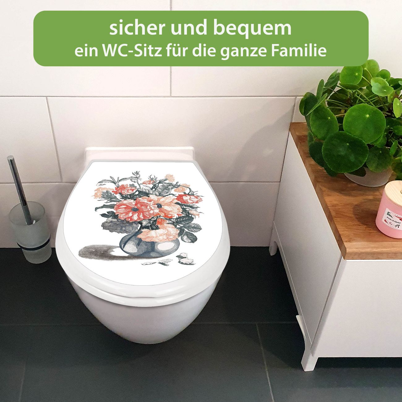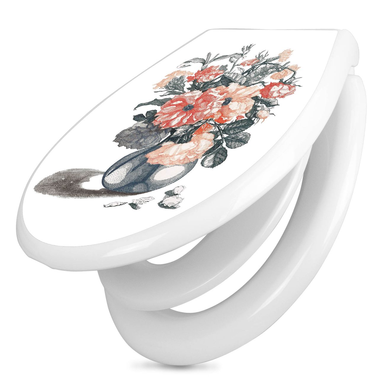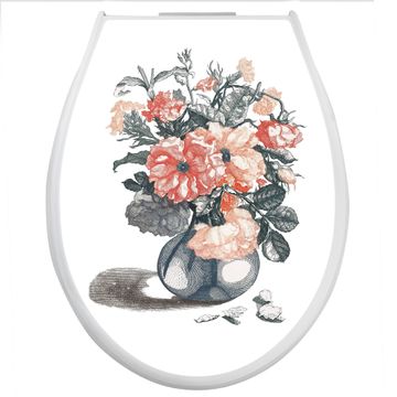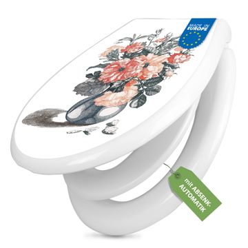 Toilettendeckel weiß mit Absenkautomatik Motiv Blumenstrauß Vintage
