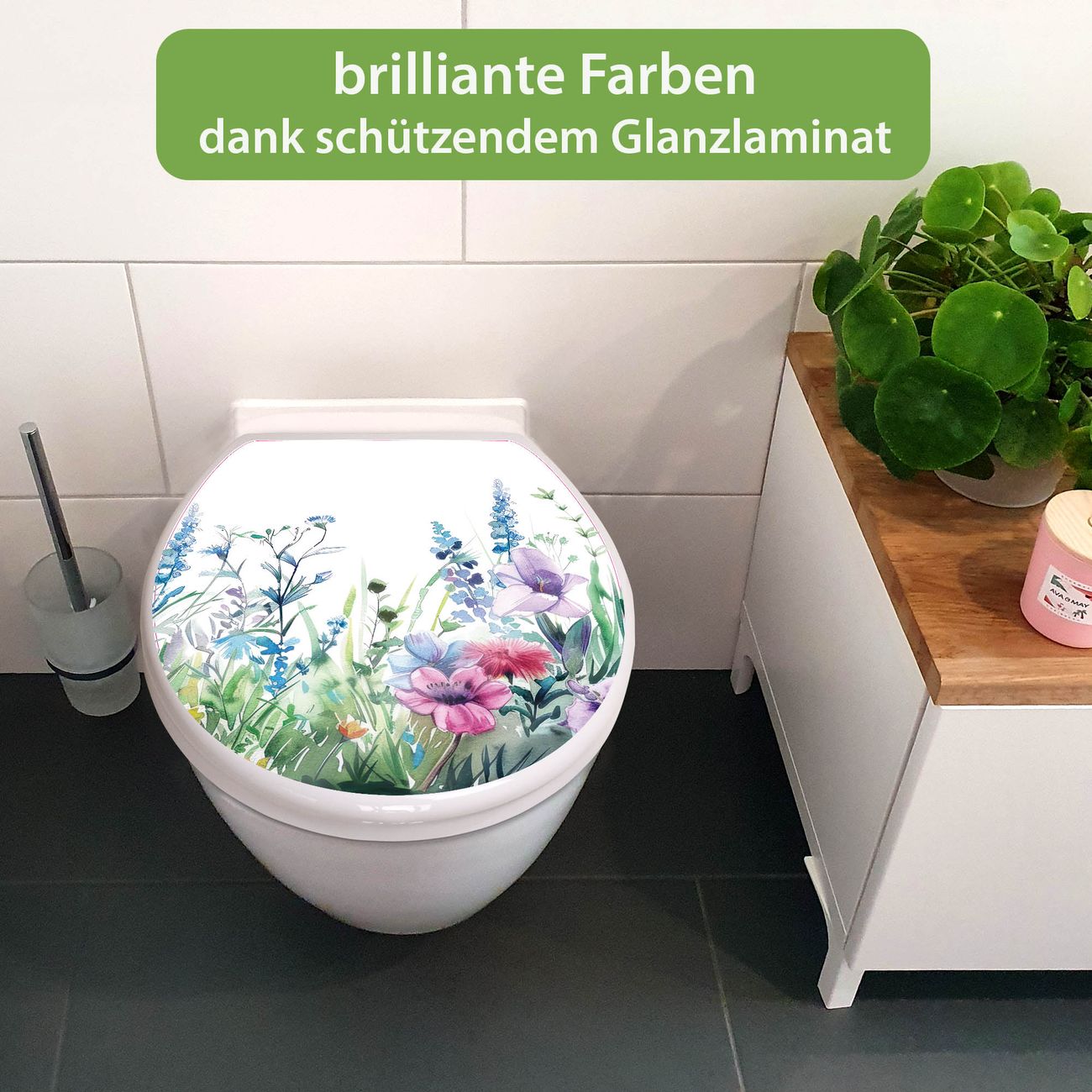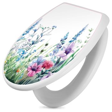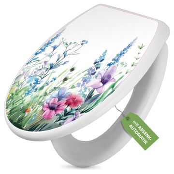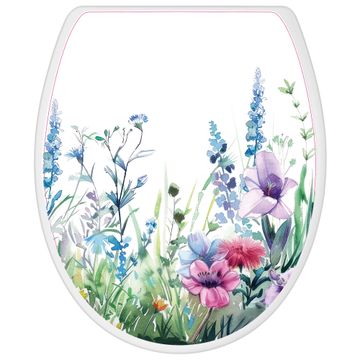 Toilettendeckel weiß mit Absenkautomatik Motiv Blumenwiese in Aquarell