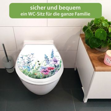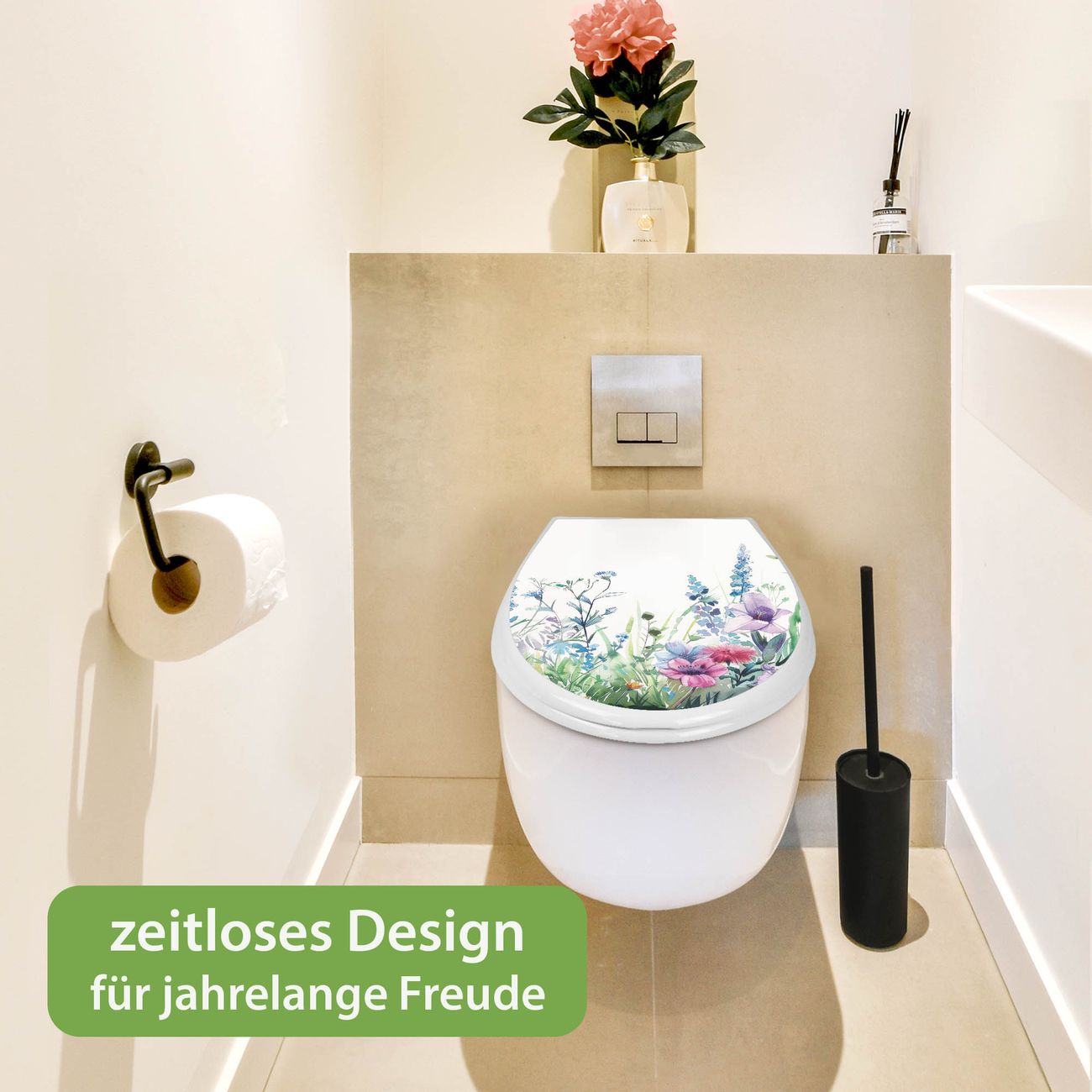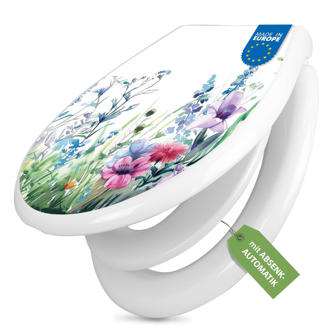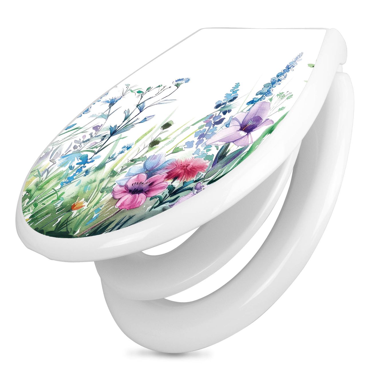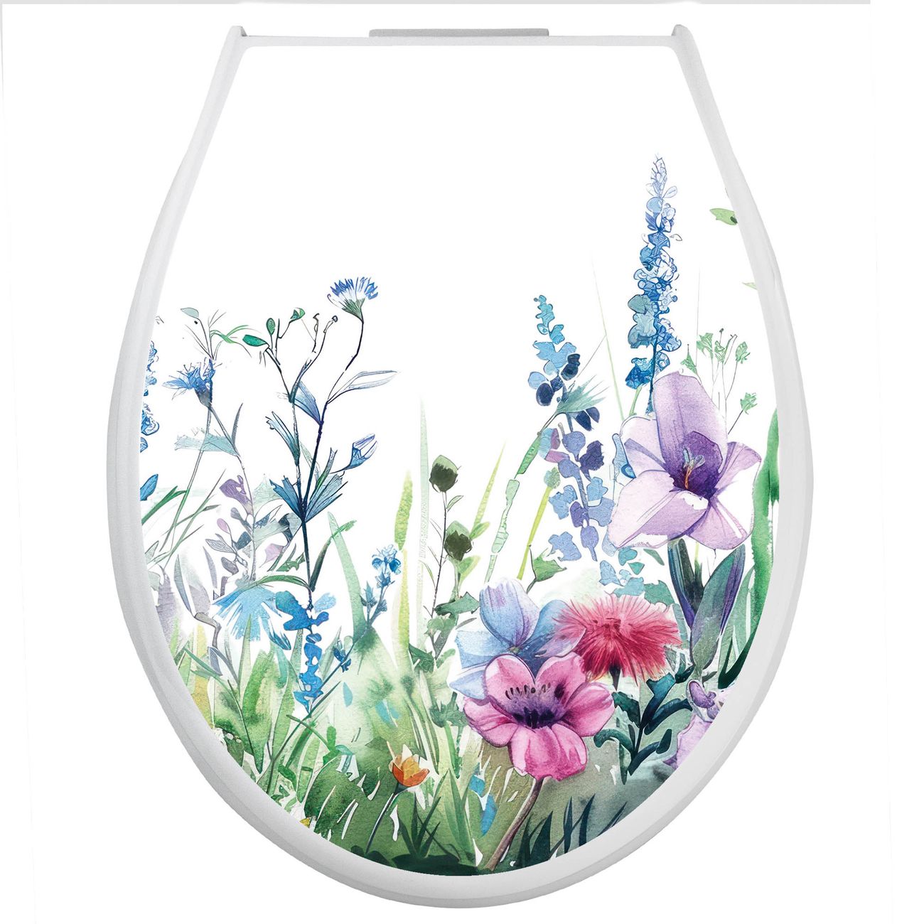 Toilettendeckel weiß mit Absenkautomatik Motiv Blumenwiese in Aquarell