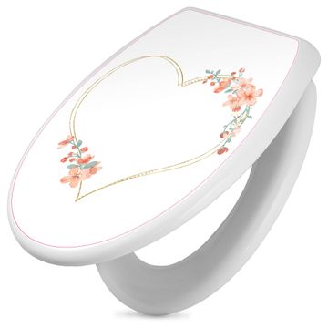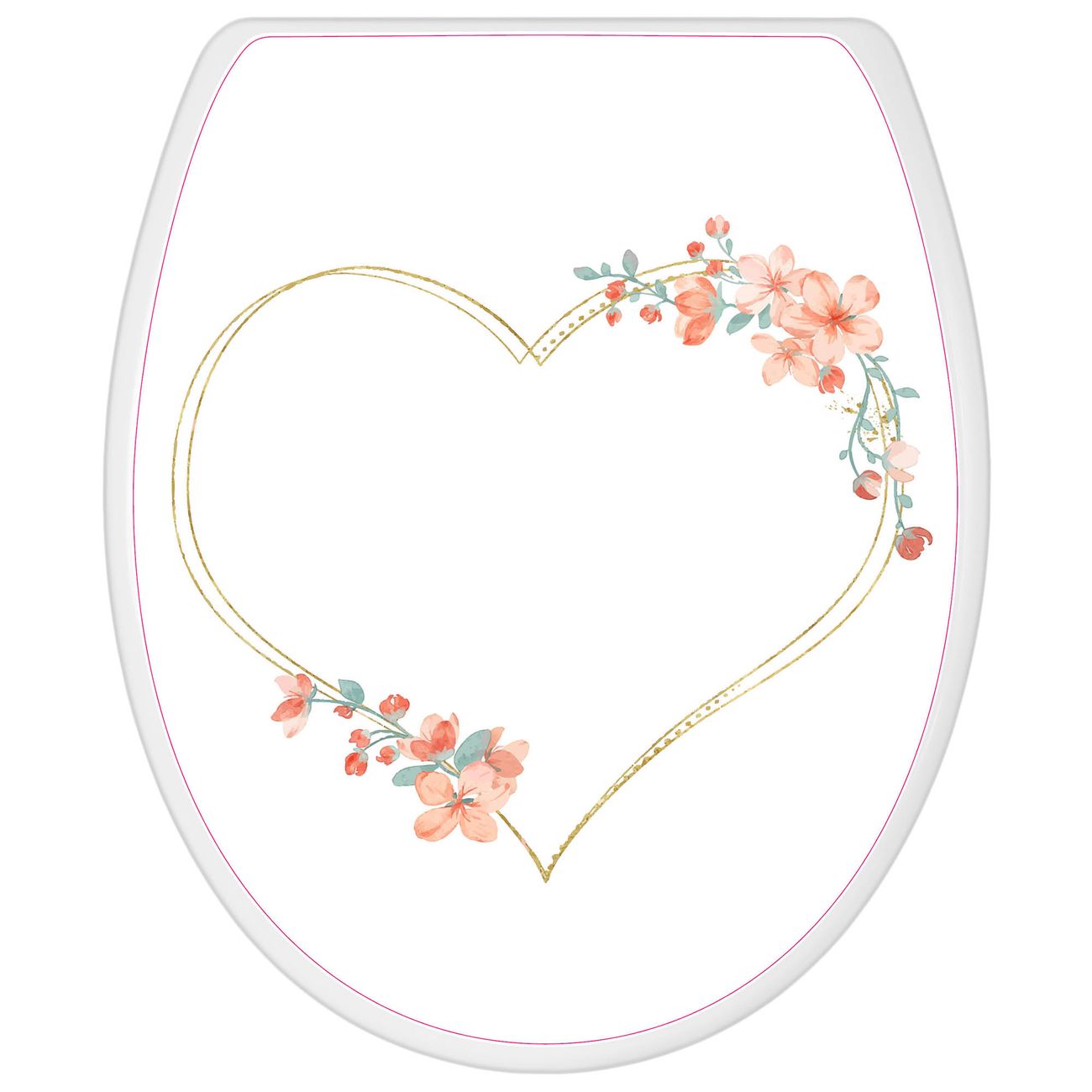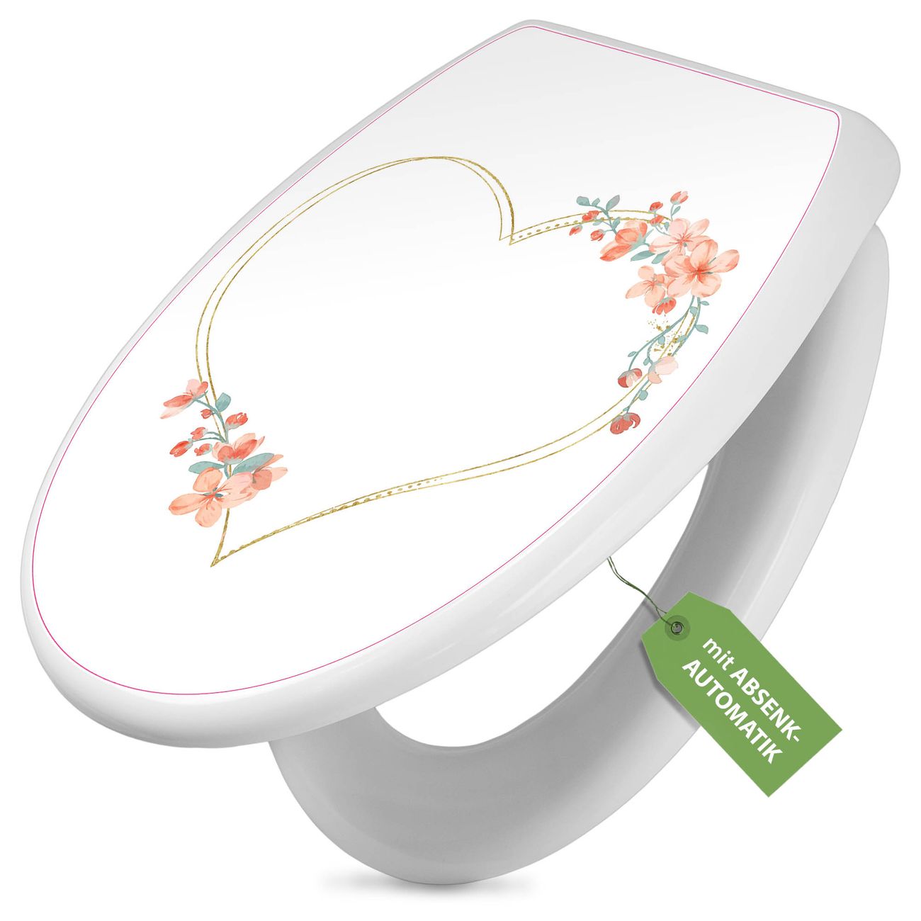 Toilettendeckel weiß mit Absenkautomatik Motiv Blumiges Herz