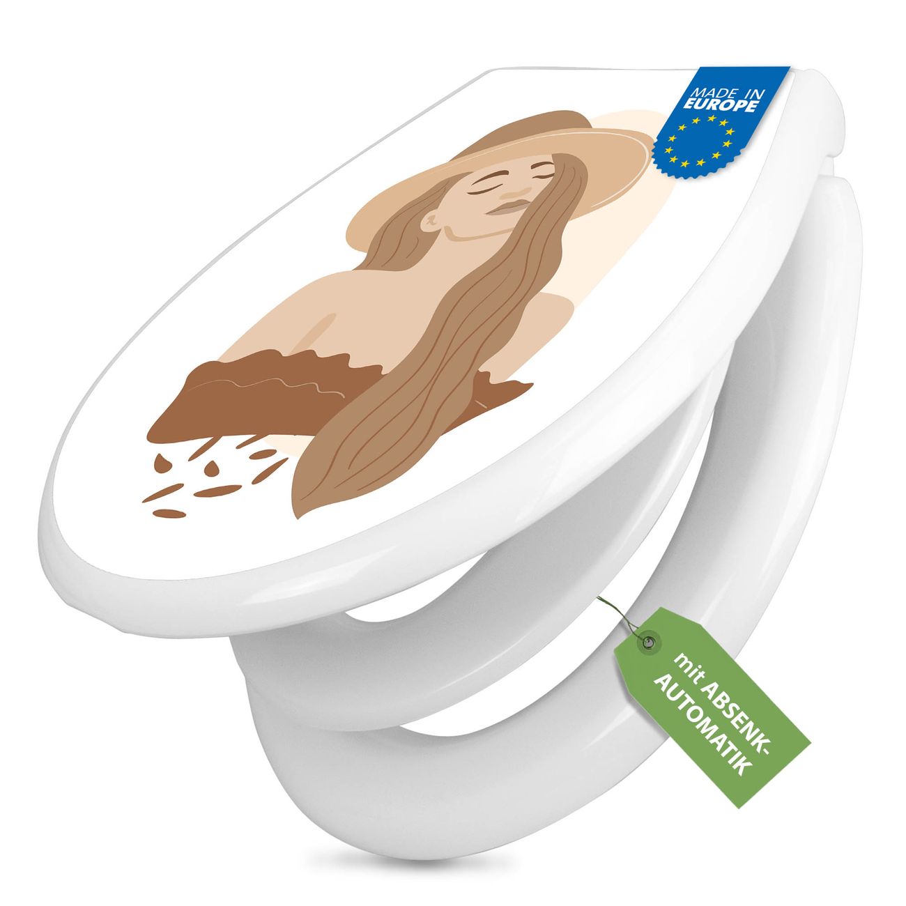 Toilettendeckel weiß mit Absenkautomatik Motiv Boho Frau