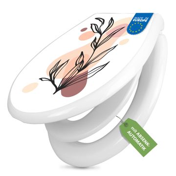 Toilettendeckel weiß mit Absenkautomatik Motiv Botanische Linienkunst 2