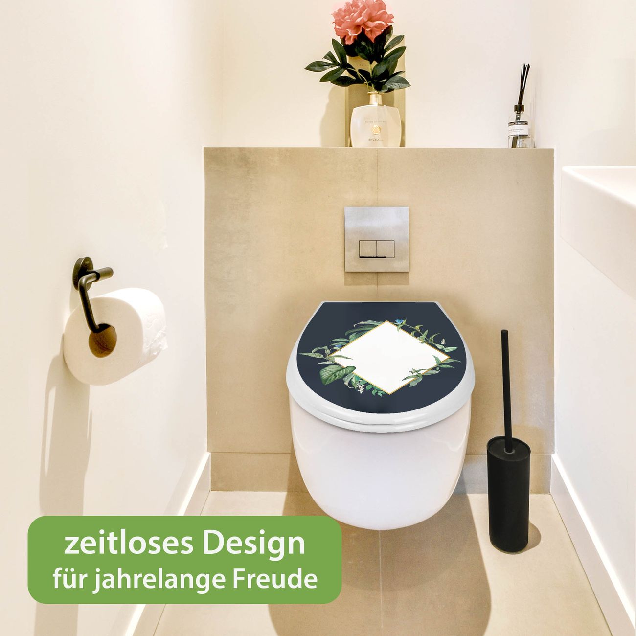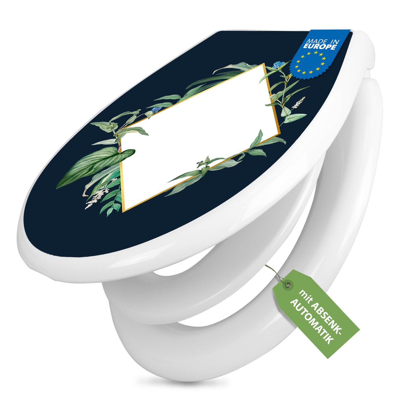 Toilettendeckel weiß mit Absenkautomatik Motiv Botanischer Rahmen