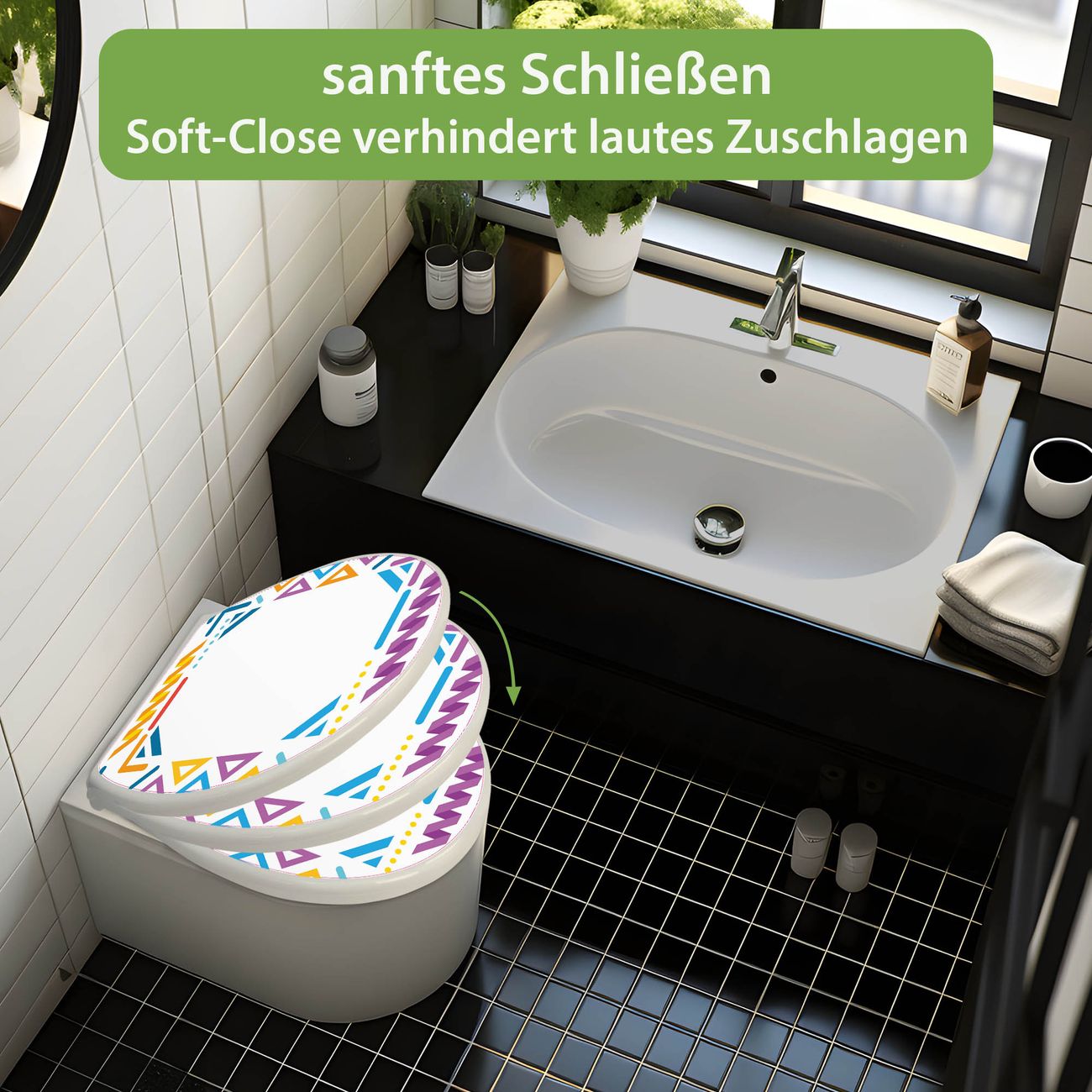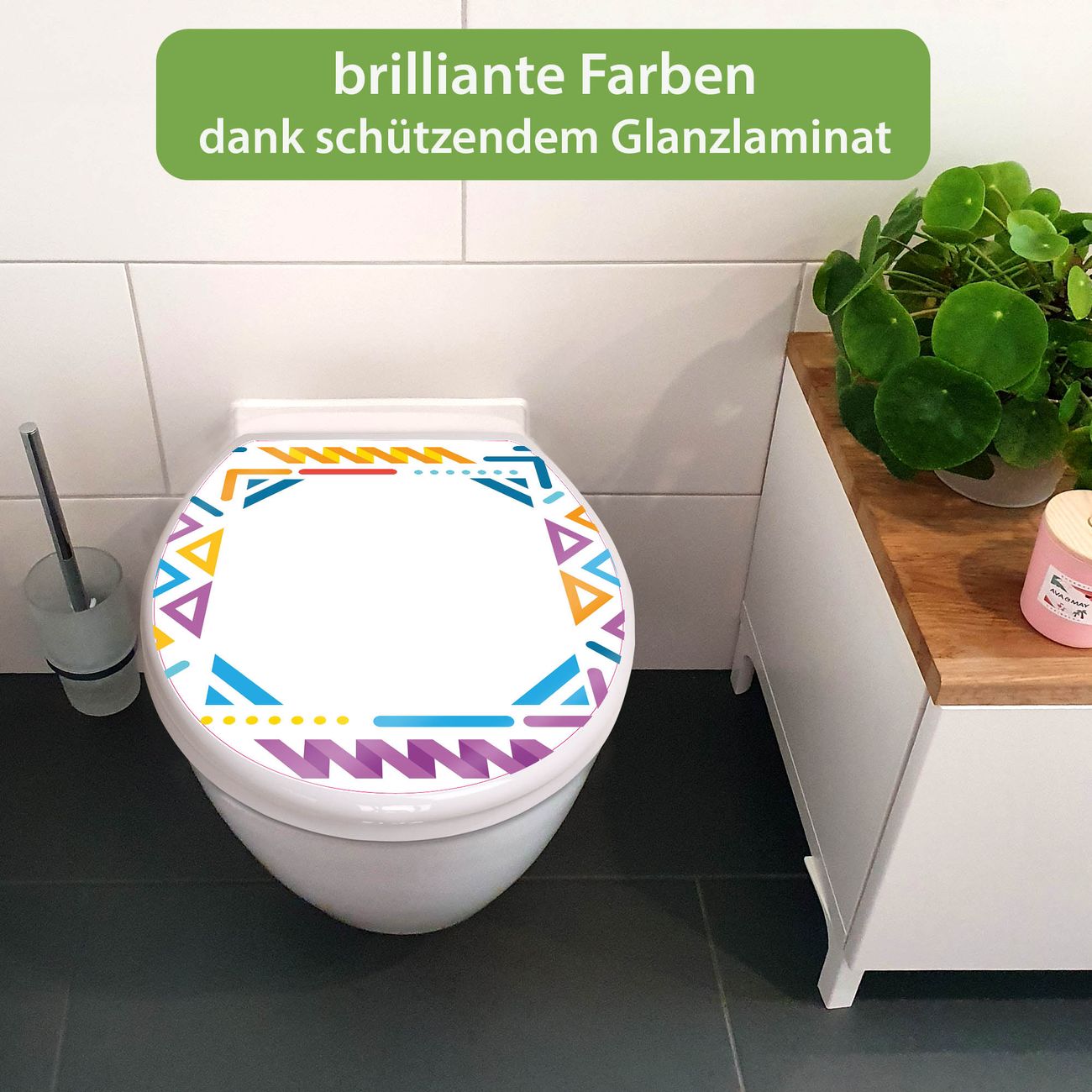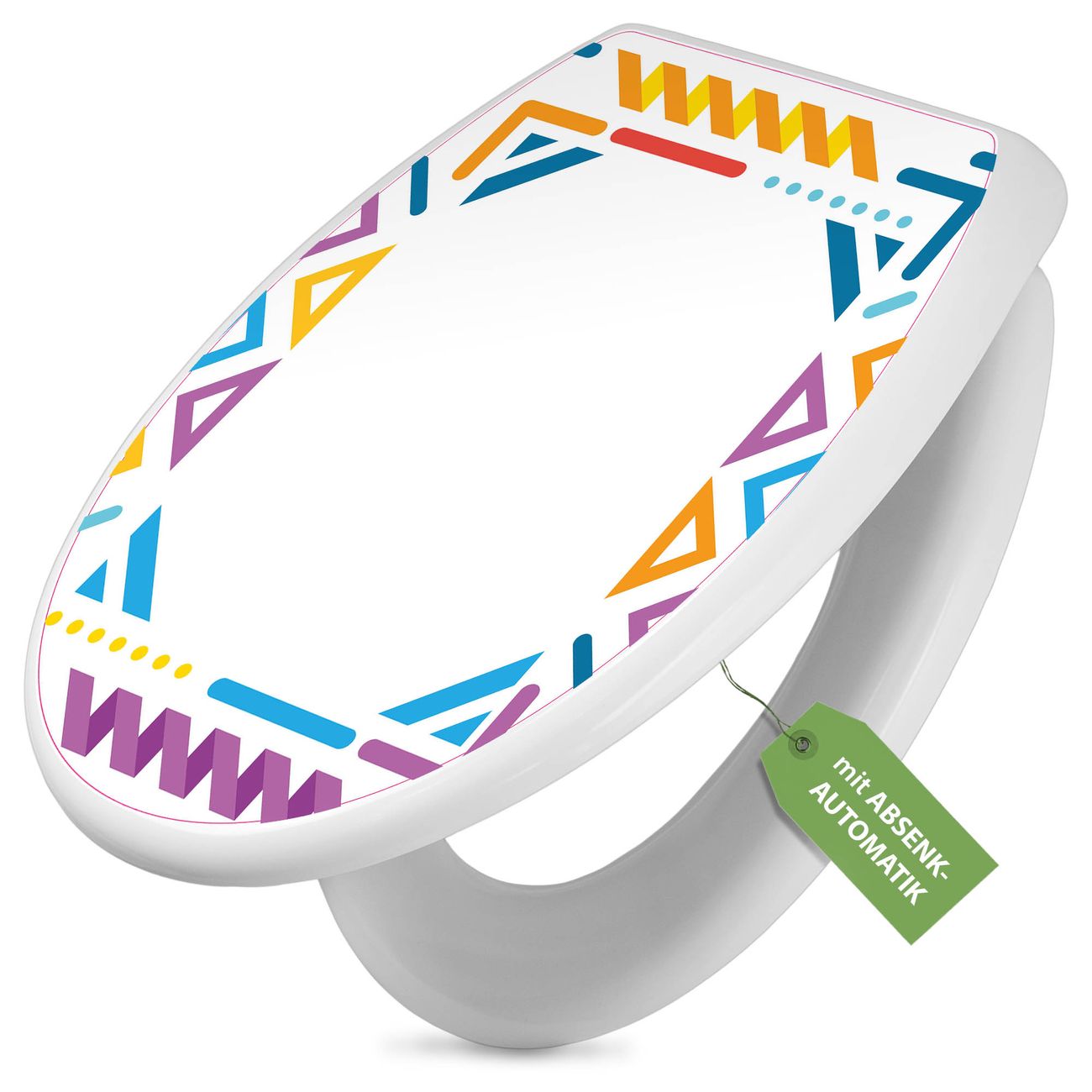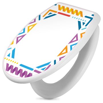 Toilettendeckel weiß mit Absenkautomatik Motiv Bunter Geometrischer Rahmen
