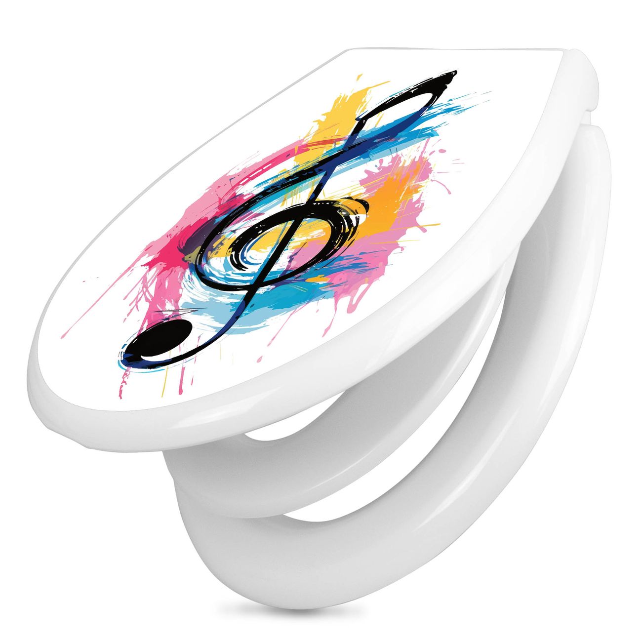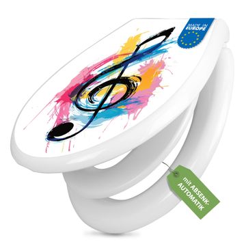 Toilettendeckel weiß mit Absenkautomatik Motiv Bunter Notenschlüssel