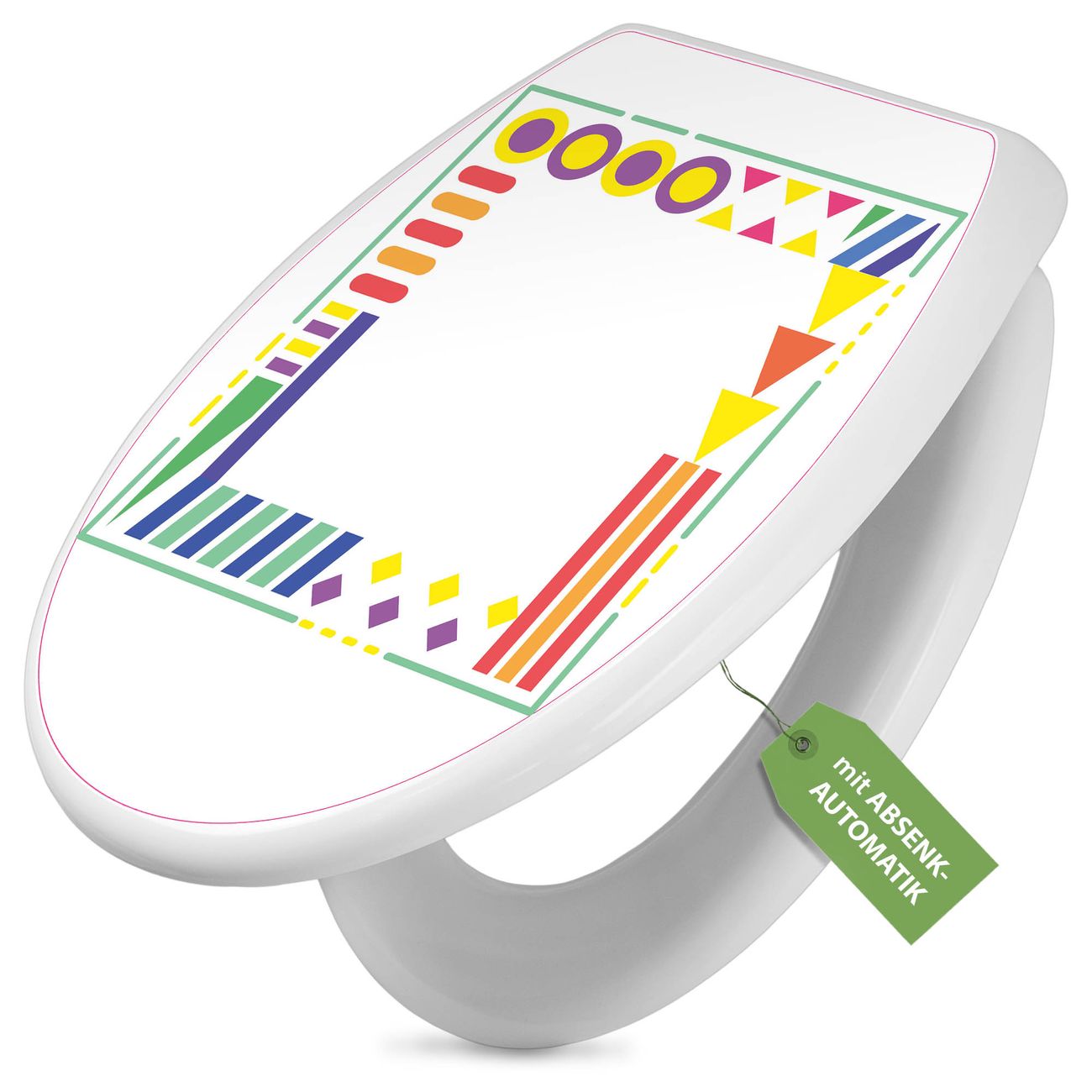 Toilettendeckel weiß mit Absenkautomatik Motiv Bunter Rahmen