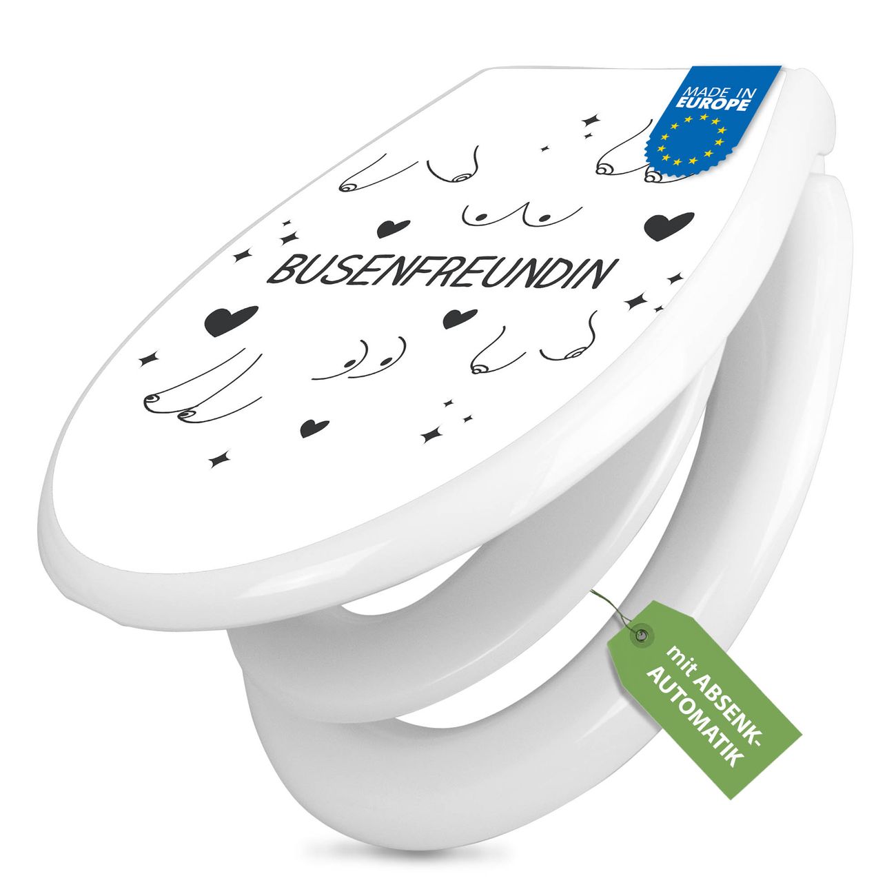 Toilettendeckel weiß mit Absenkautomatik Motiv Busenfreundin 2