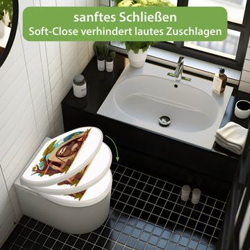 FUNKTION: Mit dem banjado Toilettendeckel mit Absenkautomatik verbinden Sie Design mit Funktionalität. Sie erhalten den WC Sitz in bewährt guter Qualität mit Edelstahl Scharnieren und Montagematerial. DESIGN: Der Klodeckel hat eine ansprechende Optik, eine besondere Form und ist sehr stabil. Das Motiv besteht aus einer farbbrillianten Motivfolie, die durch ein Schutzlaminat zusätzlich vor Kratzern schützt. DETAILS: Der Toilettensitz besteht aus Duroplast, die Scharniere sind aus hochwertigem Edelstahl, Materialien die Ihnen eine leichte und hygienische Reinigung ermöglichen. Die Gesamtgröße beträgt 37,3cm x 45cm x 5cm, die Grundfarbe ist weiß. NUTZEN: Mit Hilfe der detaillierten Aufbauanleitung ermöglichen wir eine schnelle und unkomplizierte Montage. Die banjado Klobrille ist universell geeignet für alle gängigen WC Schüsseln. Der Lochabstand zur Befestigung kann variable eingestellt werden. BANJADO: Ihr WC-Deckel wird in Sachsen in einer kleinen Manufaktur von Hand veredelt. Die Motivfolie ist lösungsmittelfrei und schutzlaminiert, für einen langen Halt. Wir wünschen viel Freude bei der Auswahl eines schönen Motivs.