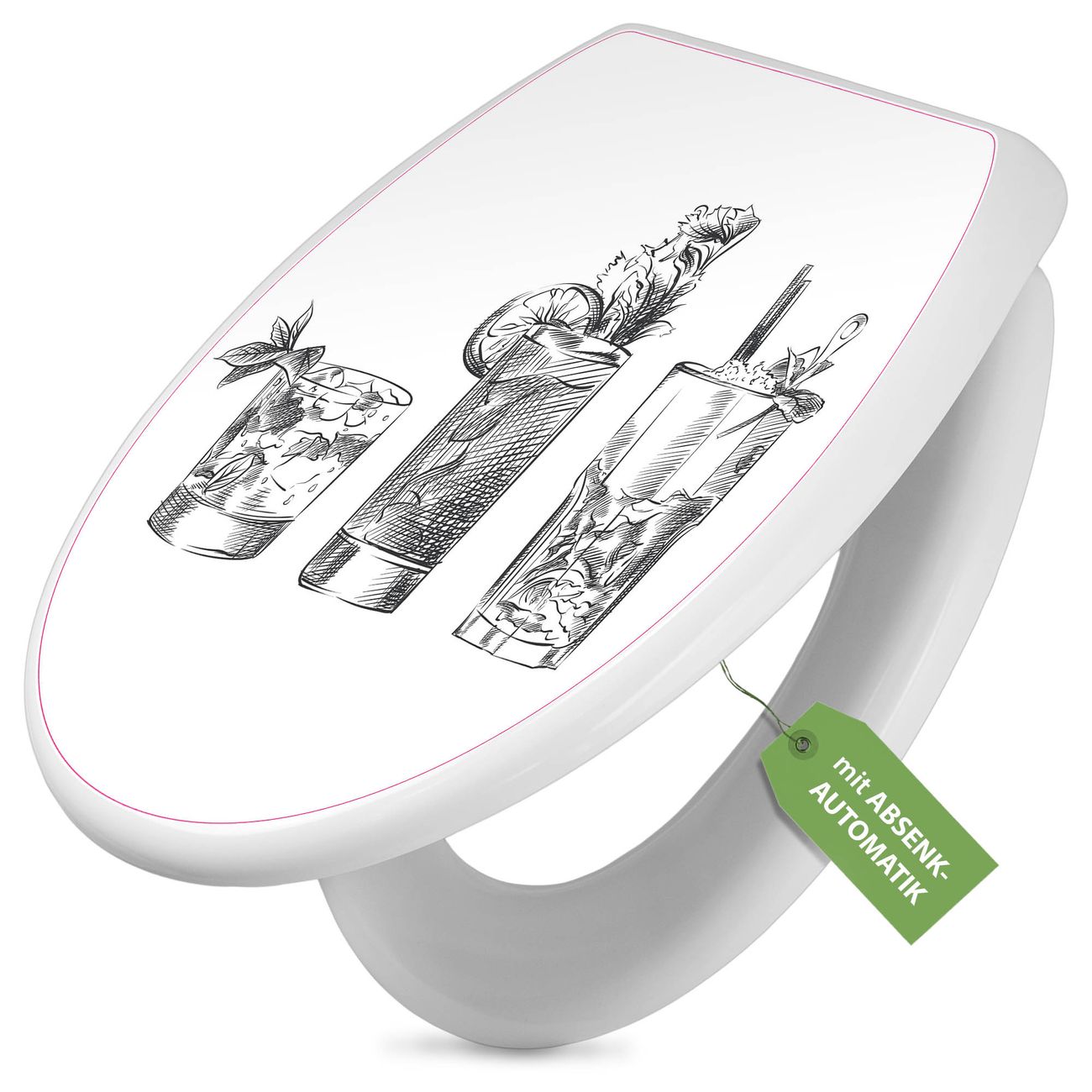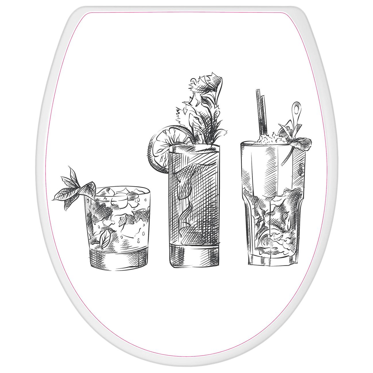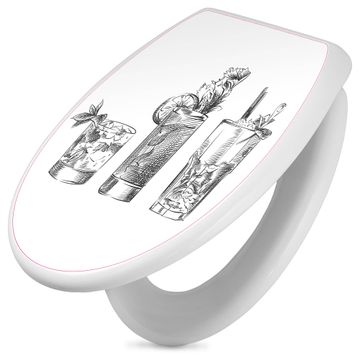 Toilettendeckel weiß mit Absenkautomatik Motiv Cocktail Skizzen