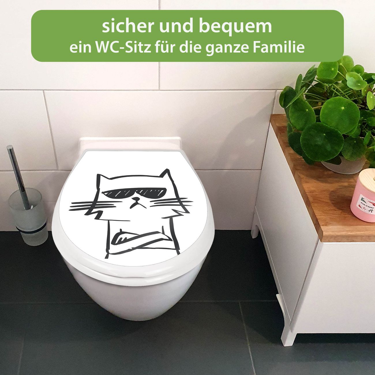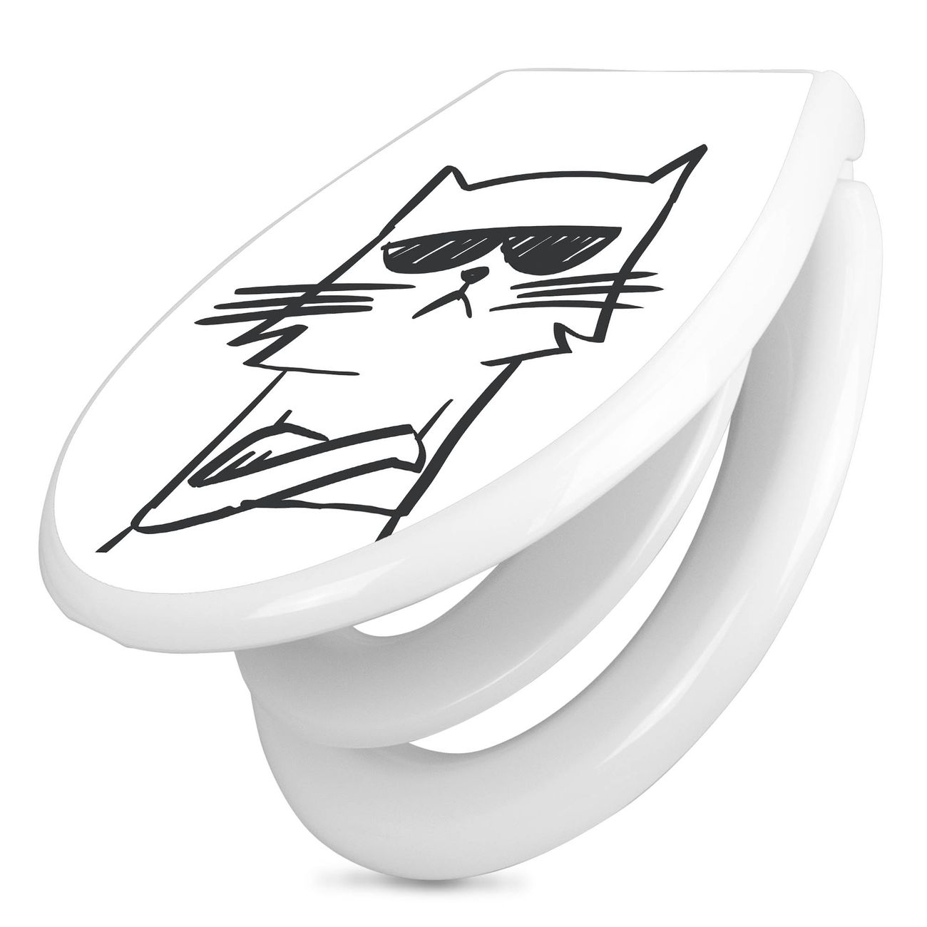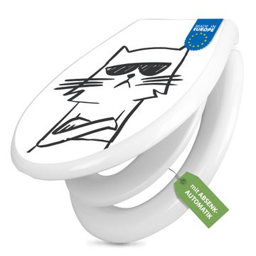 Toilettendeckel weiß mit Absenkautomatik Motiv Coole Katze