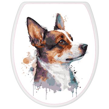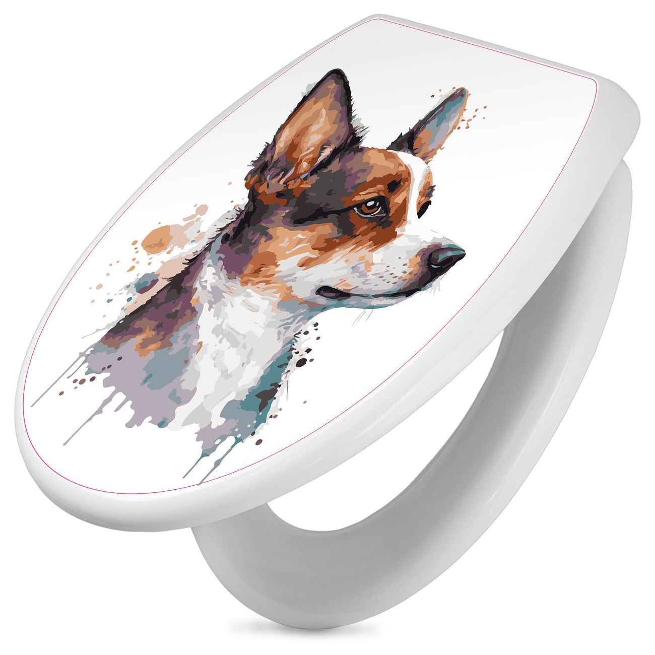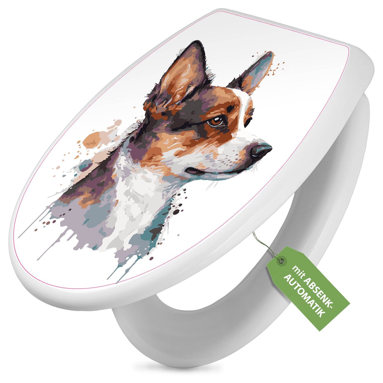 Toilettendeckel weiß mit Absenkautomatik Motiv Corgi Aquarell