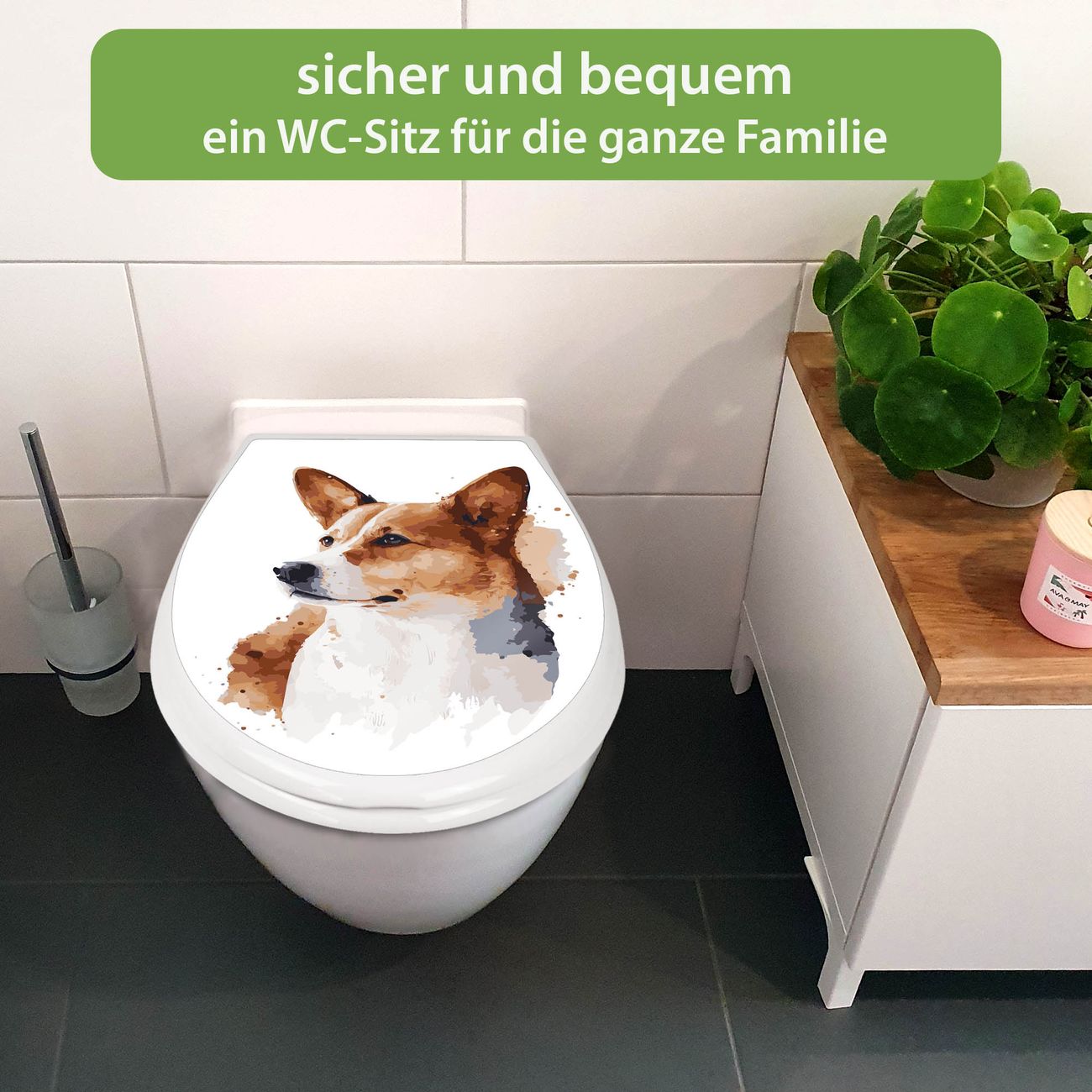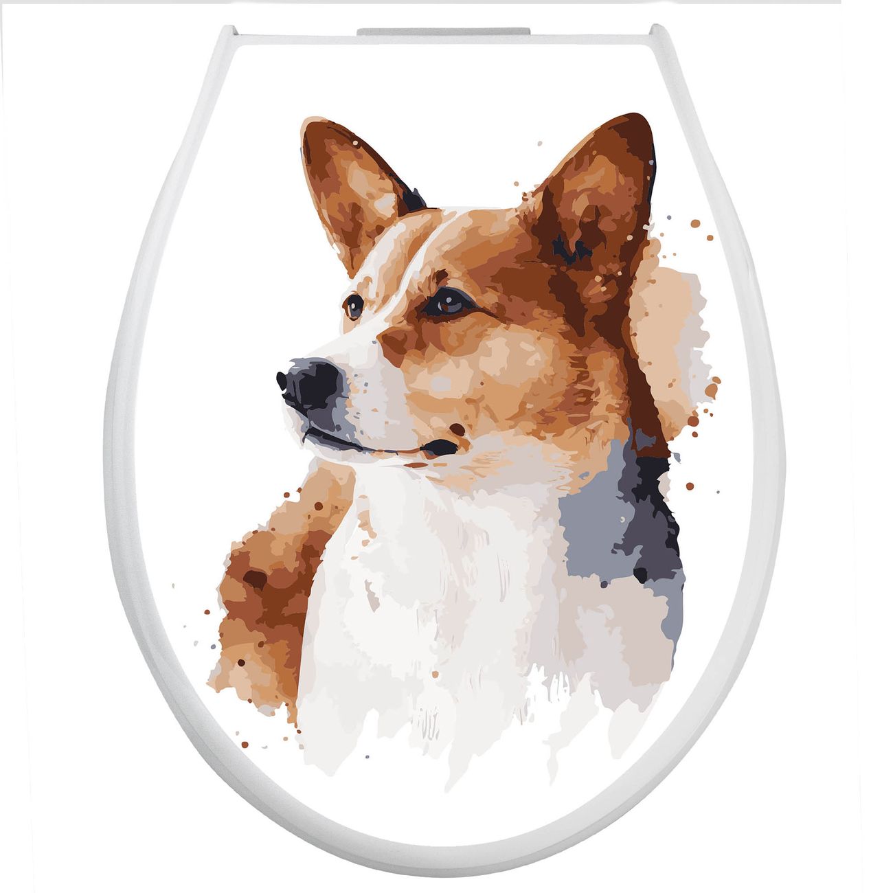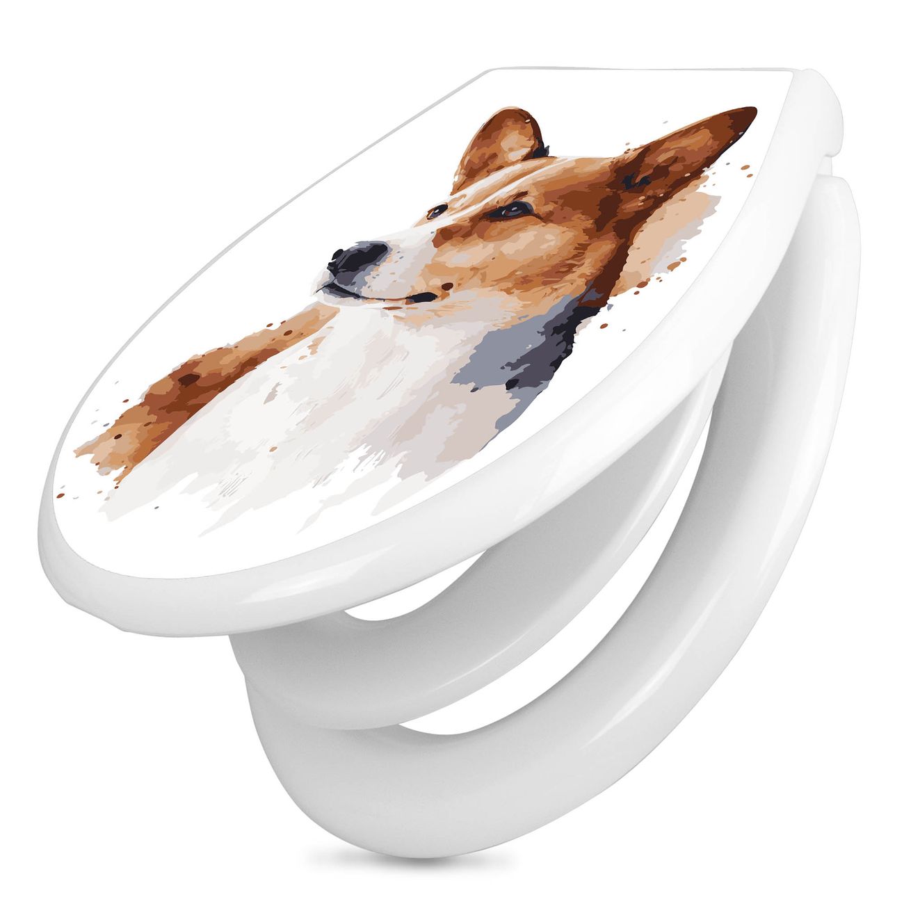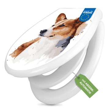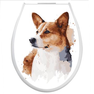 Toilettendeckel weiß mit Absenkautomatik Motiv Corgi Porträt Aquarell
