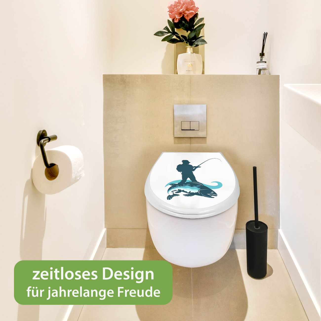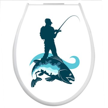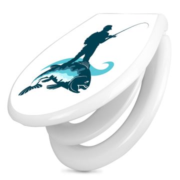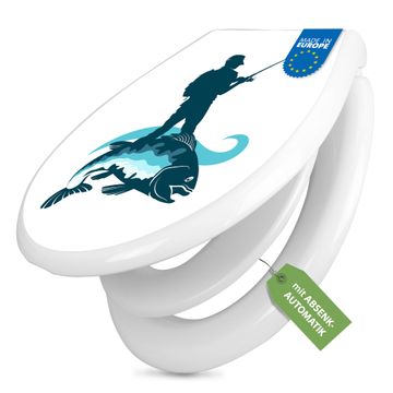 Toilettendeckel weiß mit Absenkautomatik Motiv Der Angler