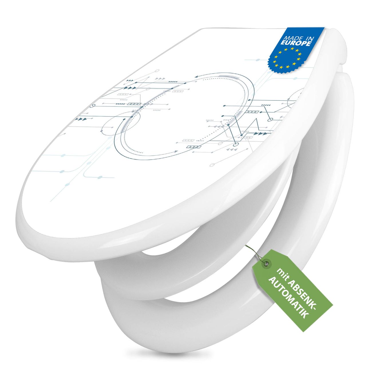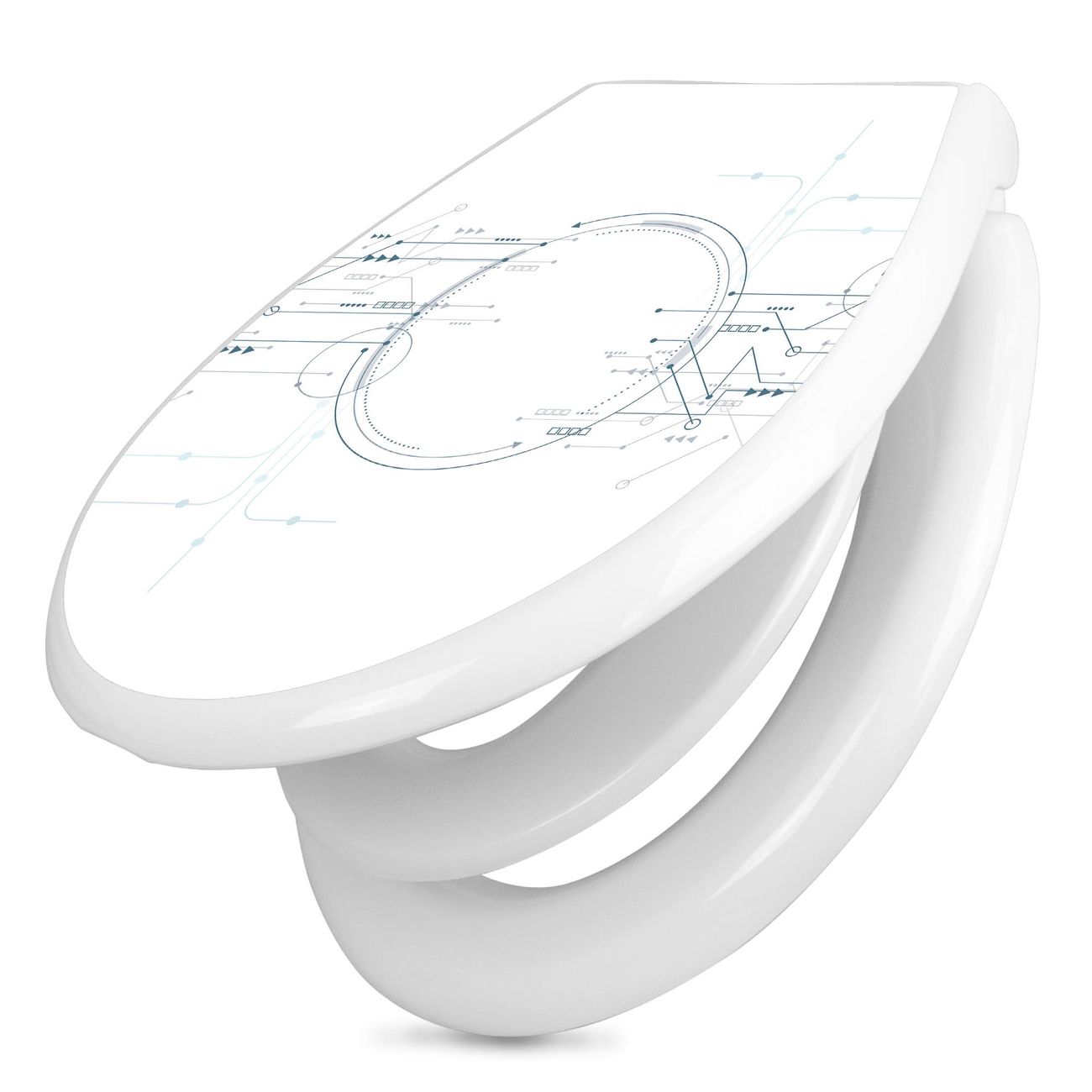 Toilettendeckel weiß mit Absenkautomatik Motiv Digitales Netzwerk 3