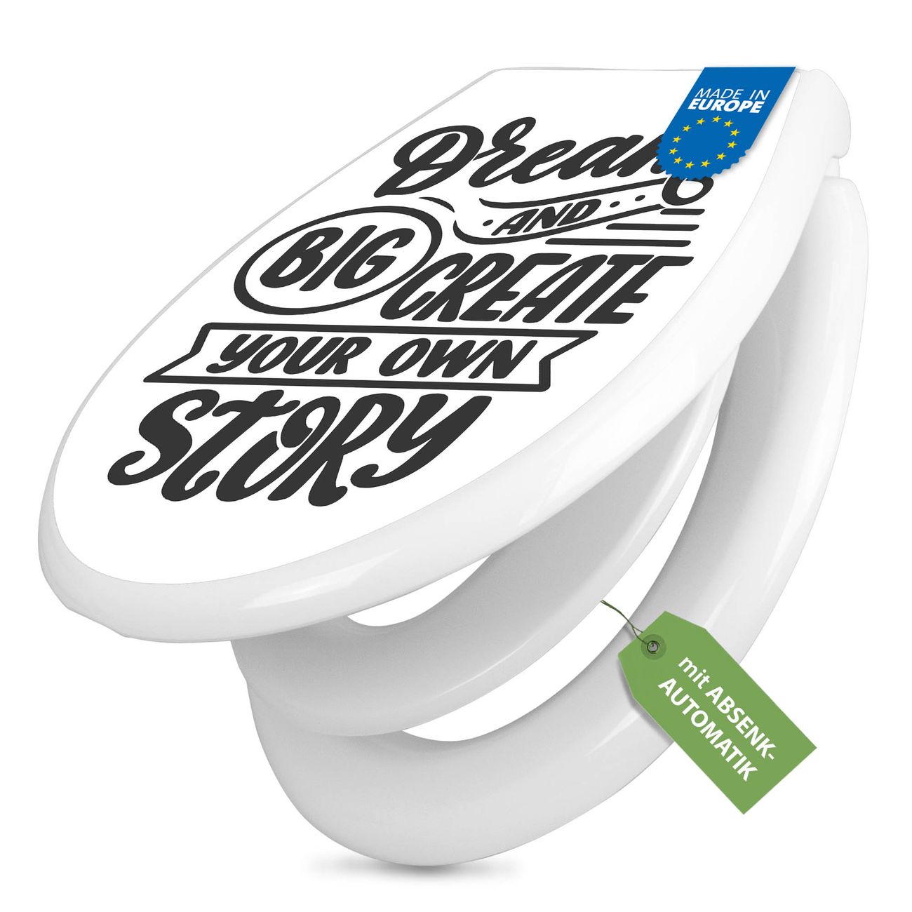 Toilettendeckel weiß mit Absenkautomatik Motiv Dream Big 2