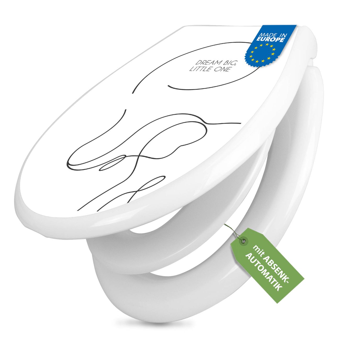 Toilettendeckel weiß mit Absenkautomatik Motiv Dream big, little One
