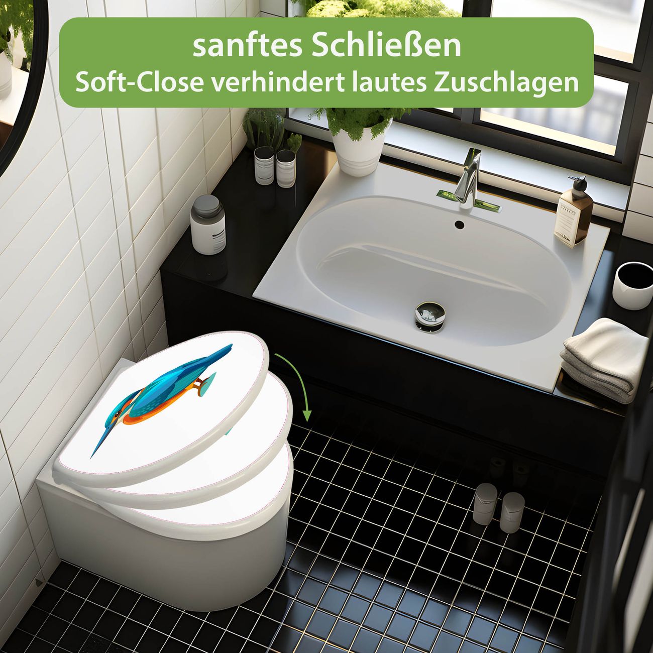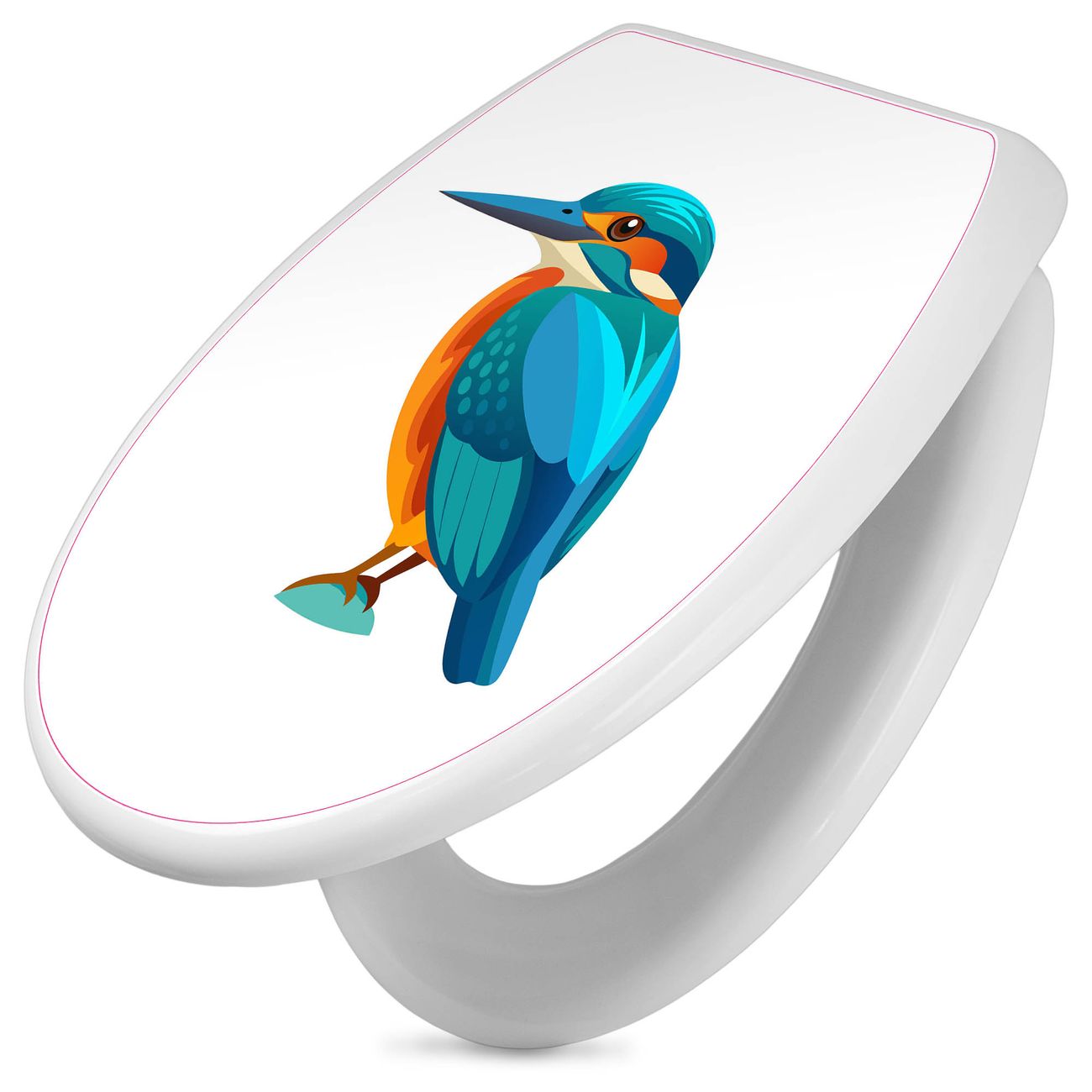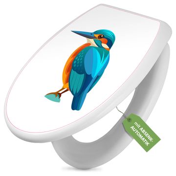 Toilettendeckel weiß mit Absenkautomatik Motiv Eisvogel Illustration