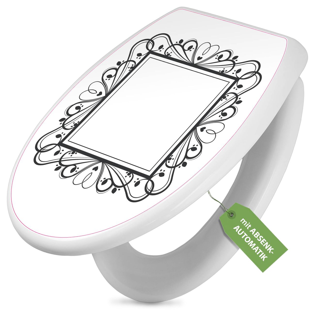 Toilettendeckel weiß mit Absenkautomatik Motiv Elegantes Herz-Ornament