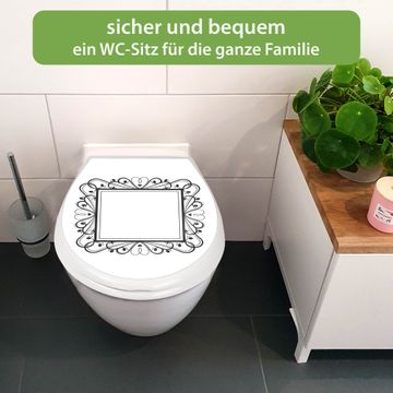 FUNKTION:Mit dem banjado Familien WC Sitz mit Absenkautomatik und dem Motiv Motiv Elegantes Herz-Ornament verbinden Sie Design mit Funktionalität. Sie erhalten den Toilettendeckel in bewährt guter Qualität mit Montagematerial passend auf alle Euro-WC-Becken. Die Gesamtgröße beträgt 37,1cm x 44,9cm x 5cm, die Grundfarbe ist weiß.</p> DESIGN:Der Klodeckel in weiß mit Motiv Motiv Elegantes Herz-Ornament hat eine ansprechende Optik, eine besondere Form und ist sehr stabil. Das Motiv besteht aus einer farbbrillianten Motivfolie, die durch ein Schutzlaminat zusätzlich vor Kratzern schützt. Der integrierte Kindersitz fügt sich harmonisch ein. DETAILS:Der Toilettensitz mit Soft Close besteht aus hochwertigem Polypropylen, ist geruchlos, ungiftig und kann mit handelsüblicher Seife gereinigt werden. Die Montage kann von von oben oder von unten erfolgen und ist kinderleicht. NUTZEN:Mit Hilfe der detaillierten Aufbauanleitung ermöglichen wir eine schnelle und unkomplizierte Montage. Die banjado Klobrille ist universell geeignet für alle Euro-WC-Schüsseln. Der Kindersitz kann unkompliziert entfernt werden. BANJADO:Ihr WC-Deckel wird in Sachsen in einer kleinen Manufaktur von Hand veredelt. Die Motivfolie ist lösungsmittelfrei und schutzlaminiert für einen langen Halt. Wir wünschen viel Freude bei der Auswahl eines schönen Motivs.