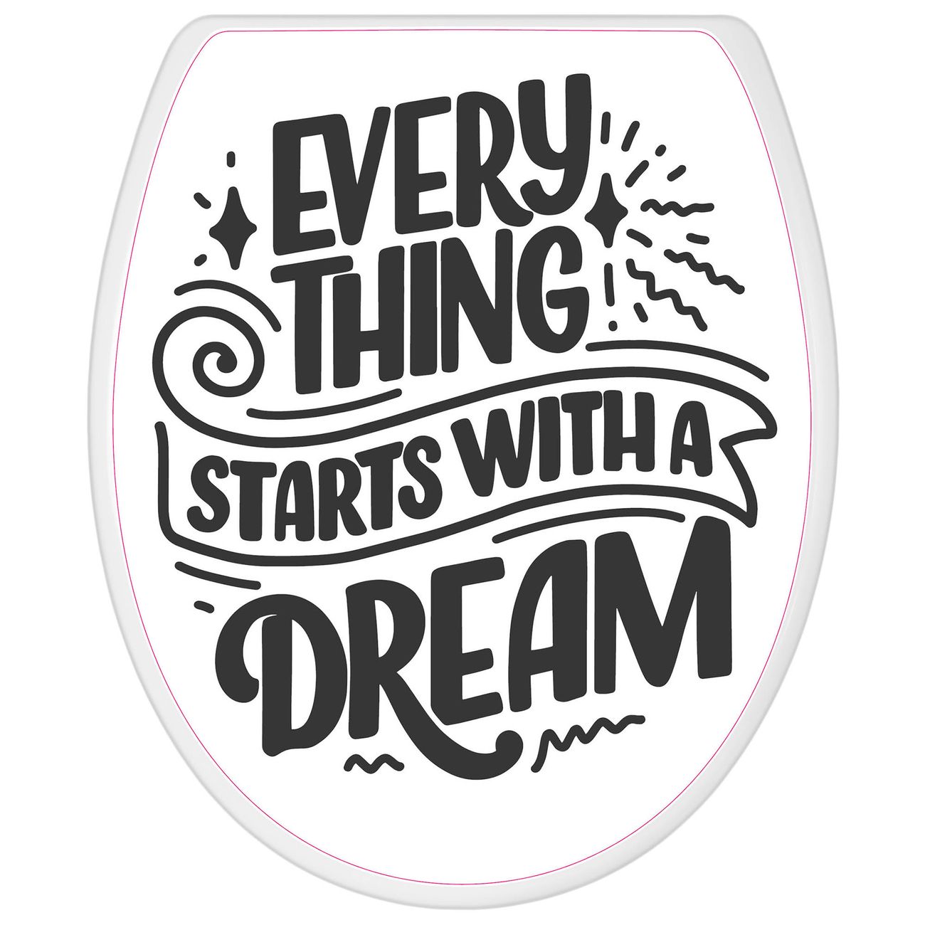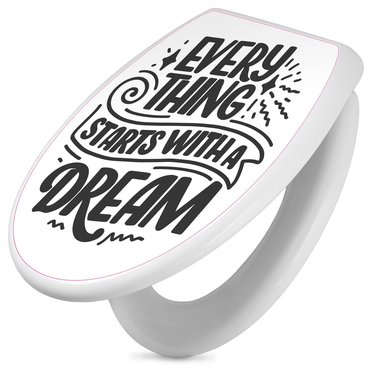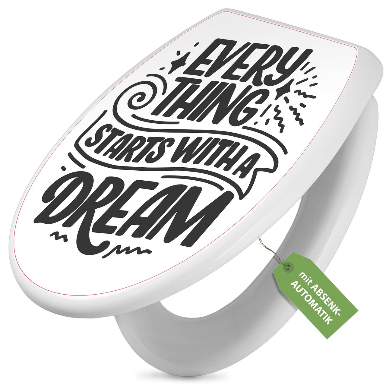 Toilettendeckel weiß mit Absenkautomatik Motiv Everything starts with a Dream 2