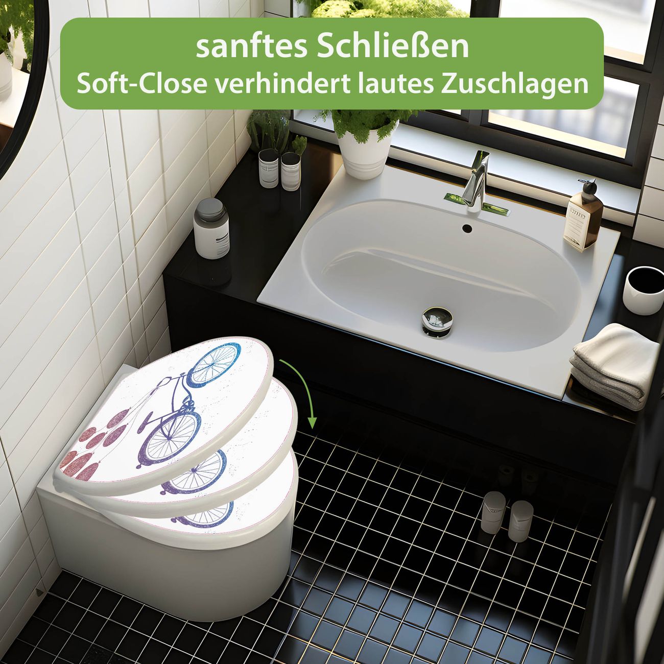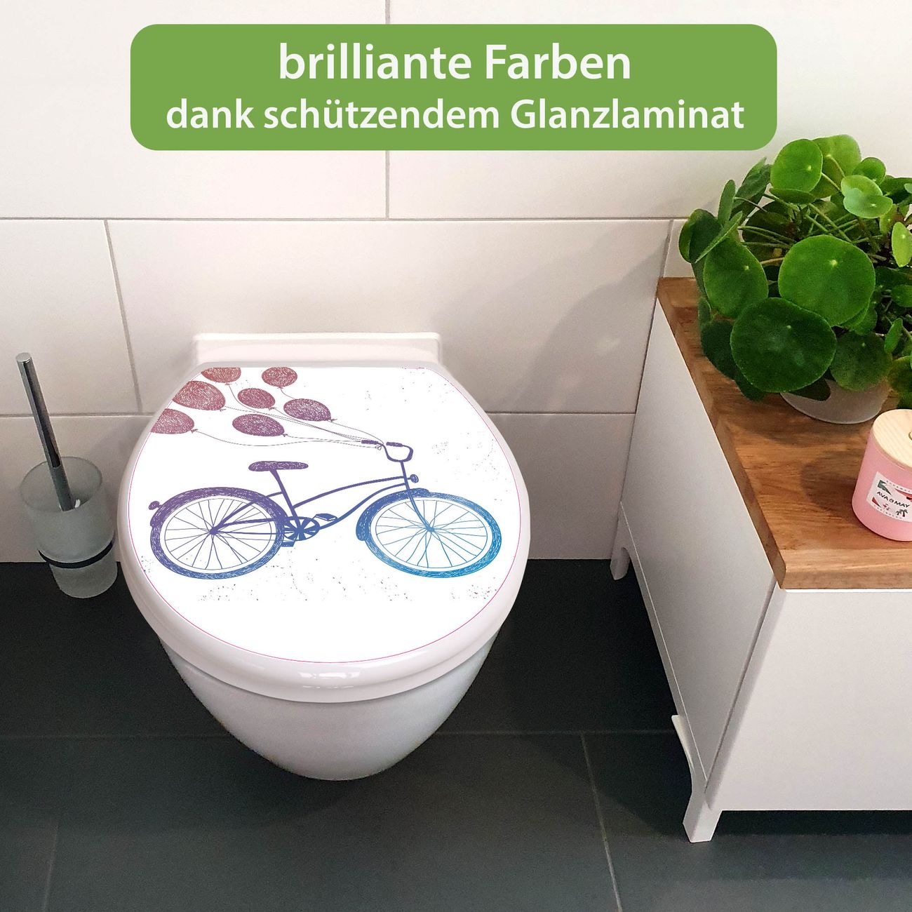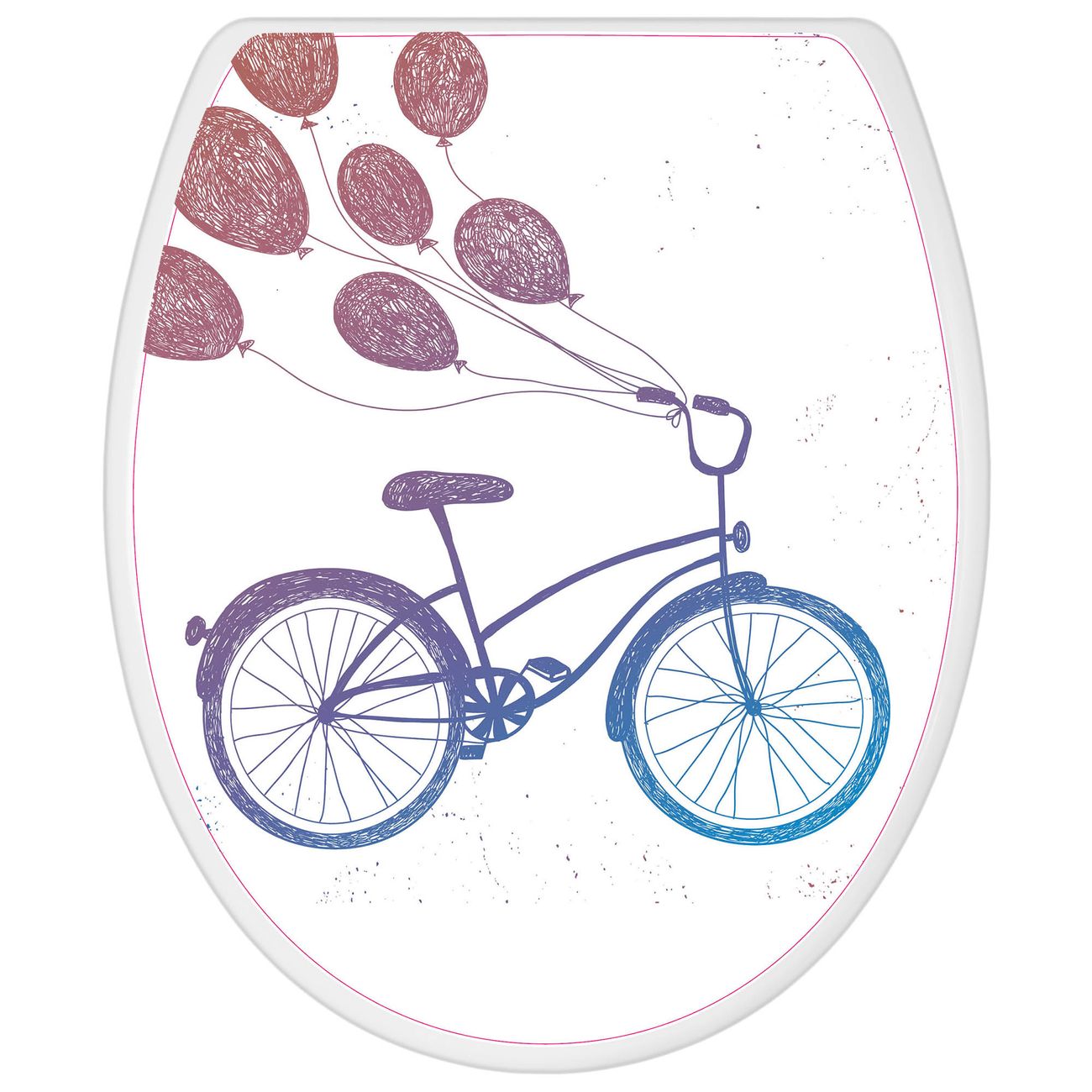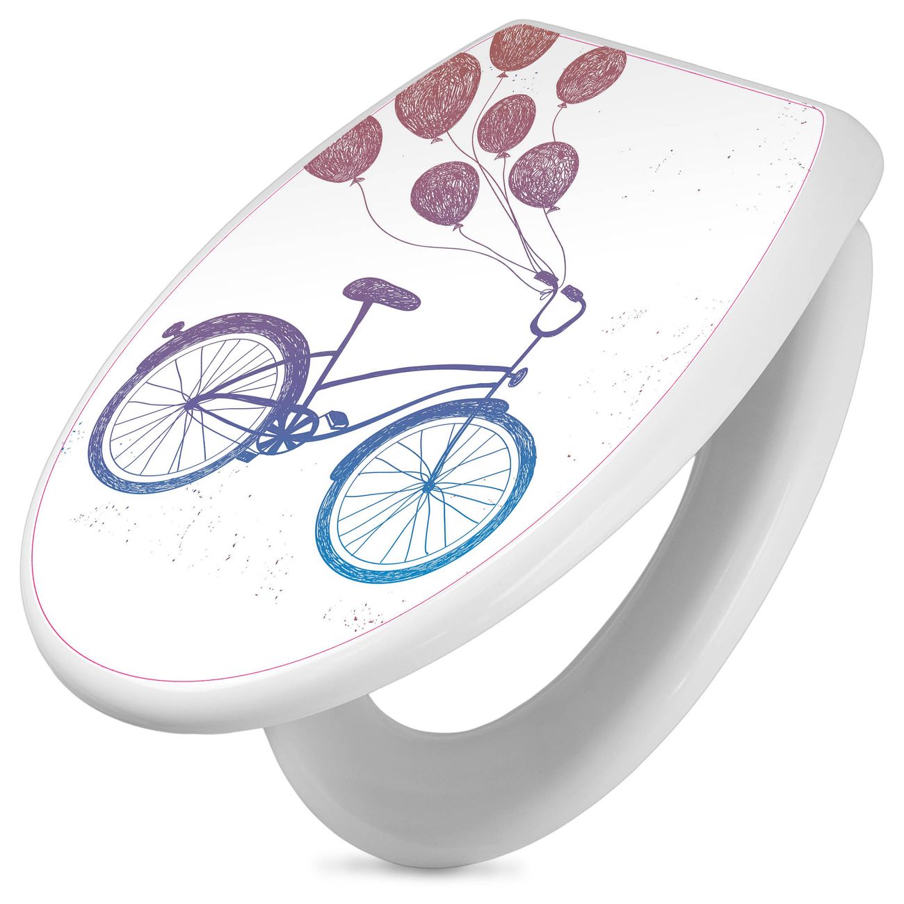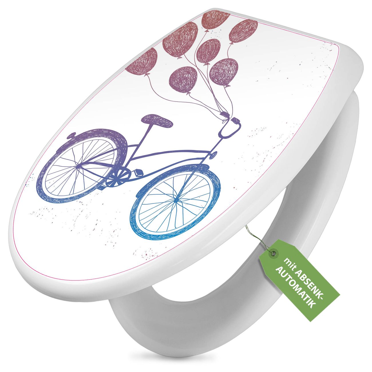 Toilettendeckel weiß mit Absenkautomatik Motiv Fahrrad mit Luftballons