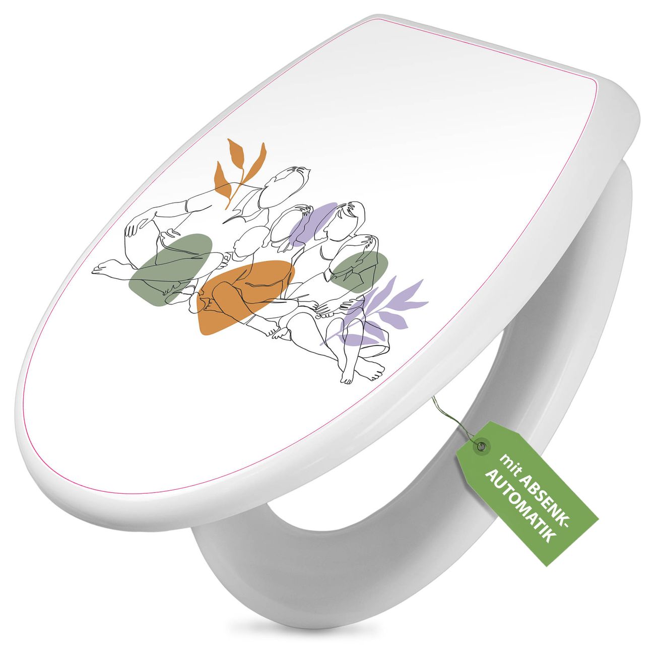 Toilettendeckel weiß mit Absenkautomatik Motiv Familienbande Lineart