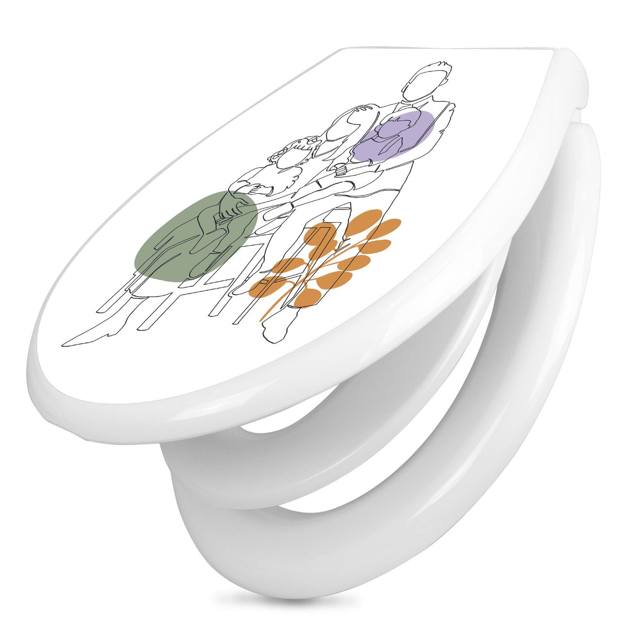 Toilettendeckel weiß mit Absenkautomatik Motiv Familienglück Lineart