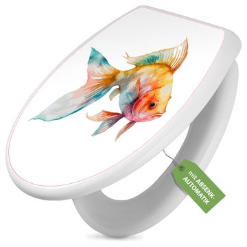 Toilettendeckel weiß mit Absenkautomatik Motiv Farbenfroher Goldfisch